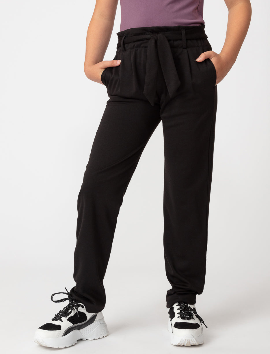 Elle peut pleinement adopter le style avec ce pantalon noir, qui allie élégance et confort. La ceinture à nouer et les détails plissés offrent une silhouette flatteuse, parfaite pour les jours d'école ou une sortie le week-end.
