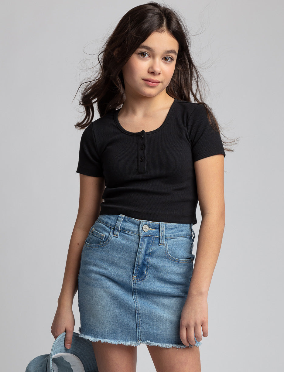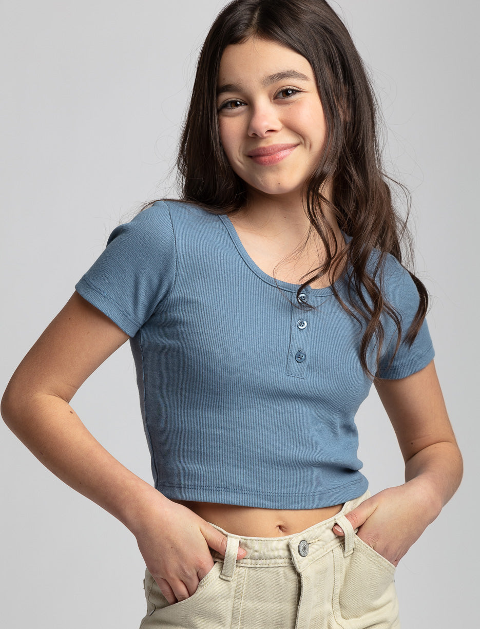 T-shirt côtelé à col boutonné