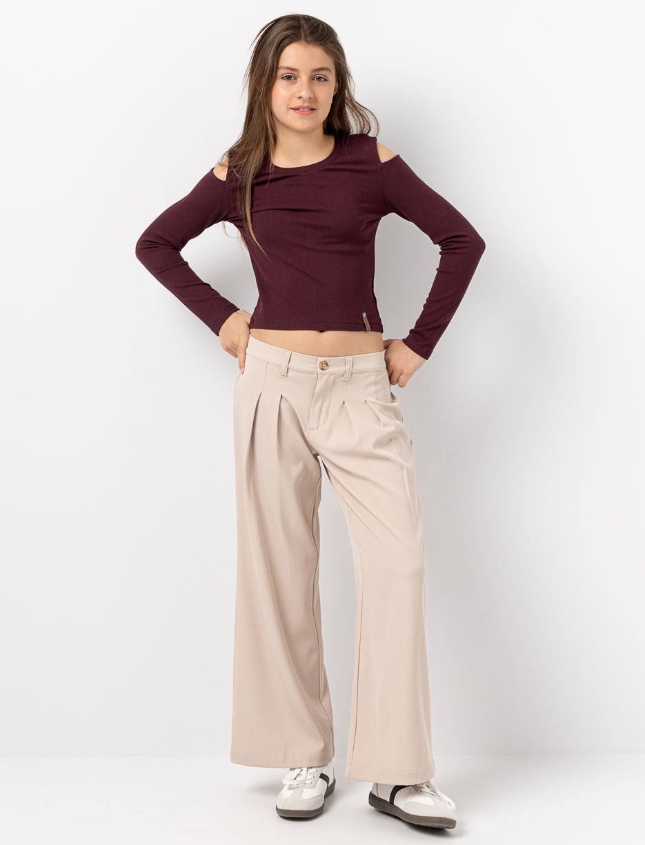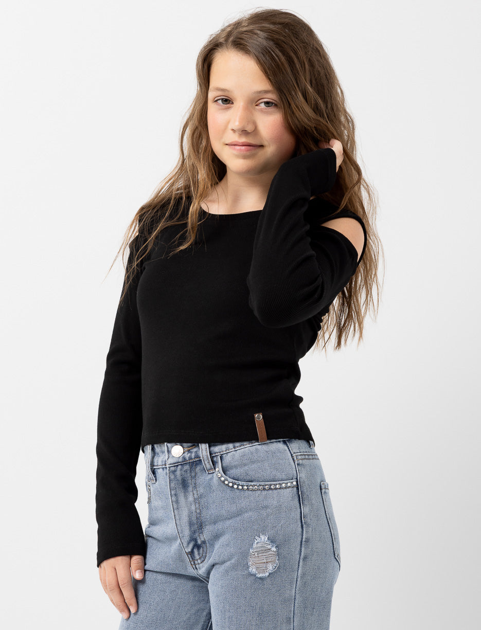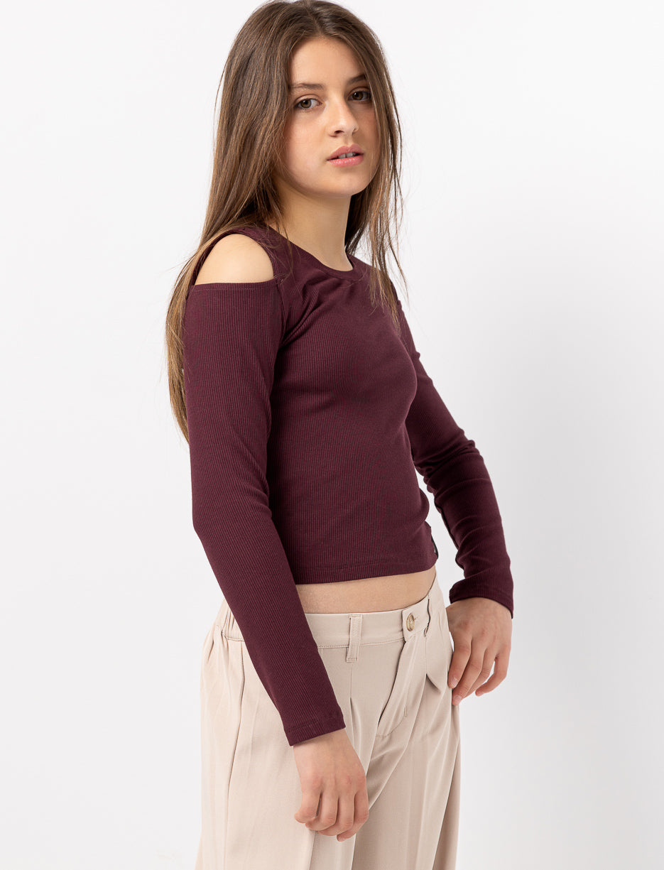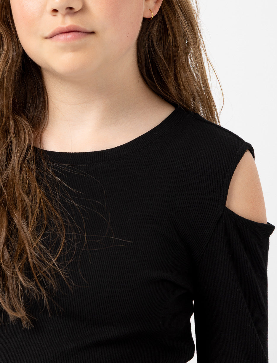Avec ses épaules dégagées et sa coupe près du corps, ce t-shirt ajoute une touche audacieuse aux tenues de tous les jours. Idéal pour une allure moderne et assumée.