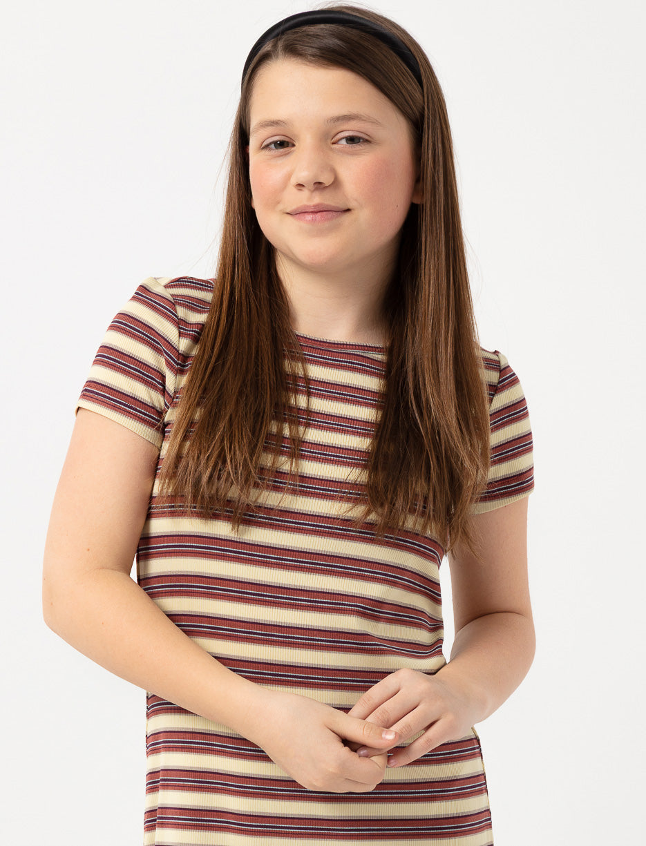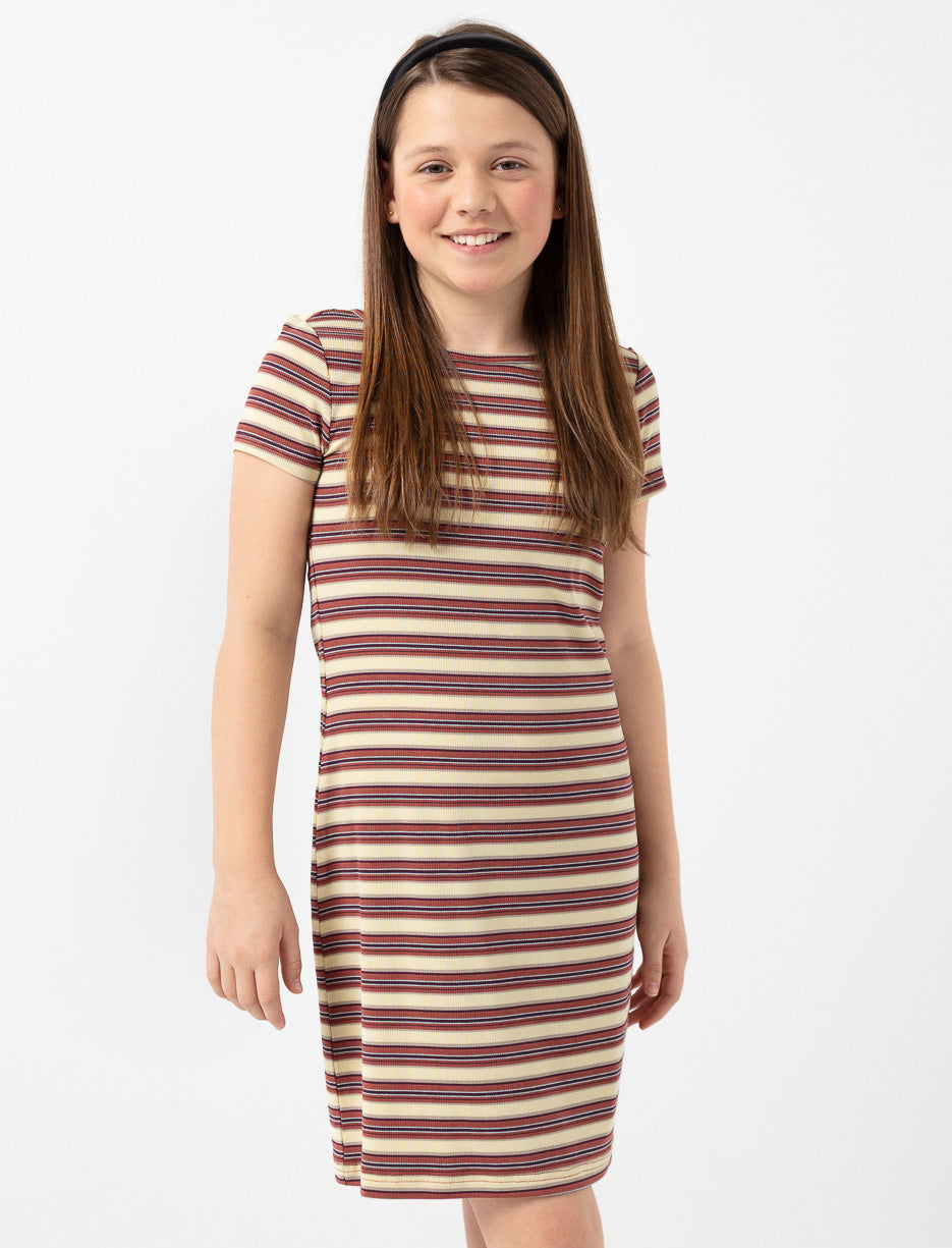 Une robe confortable et extensible qui suit tous ses mouvements. Son motif à rayures et sa coupe ajustée en font une pièce parfaite pour tous les jours.