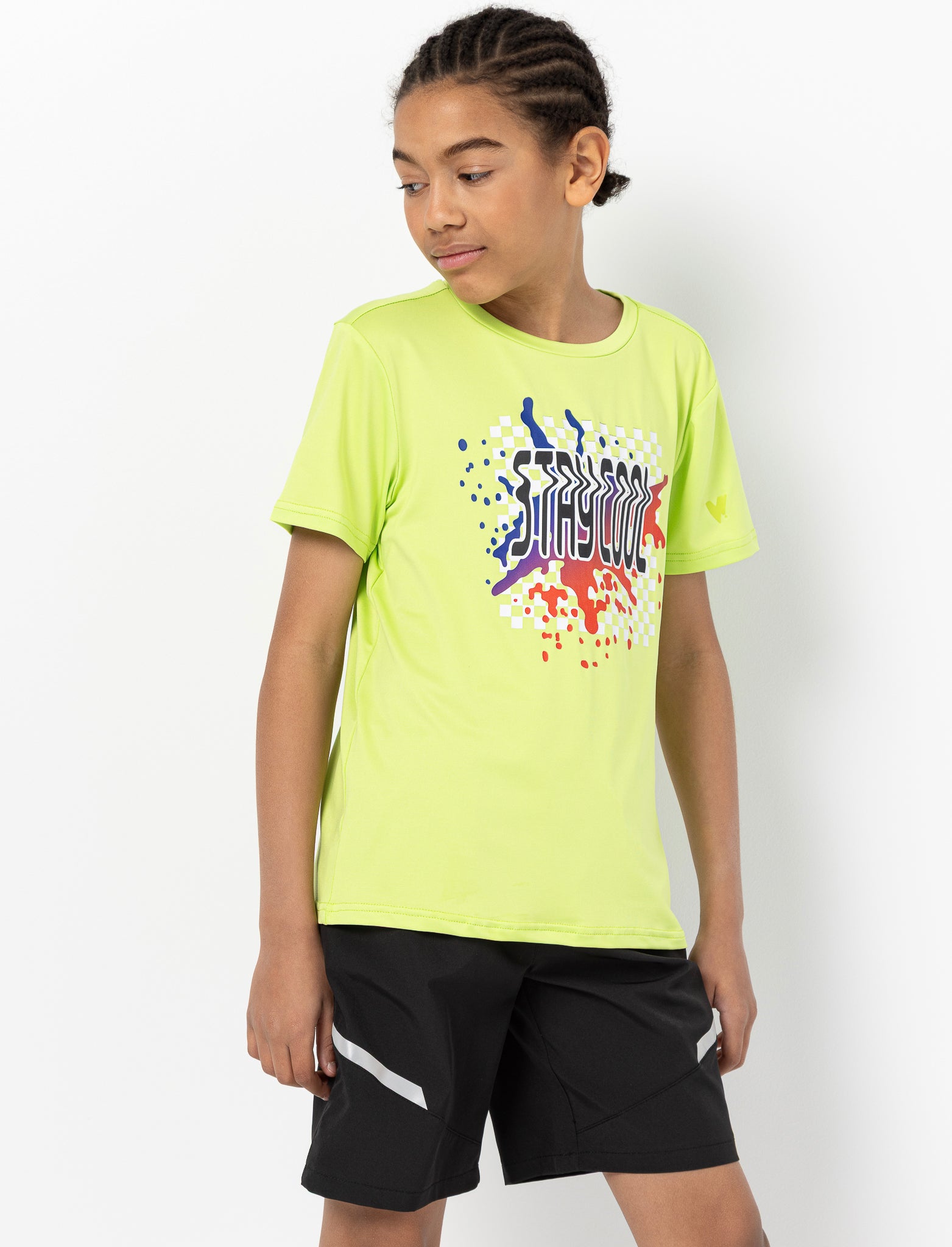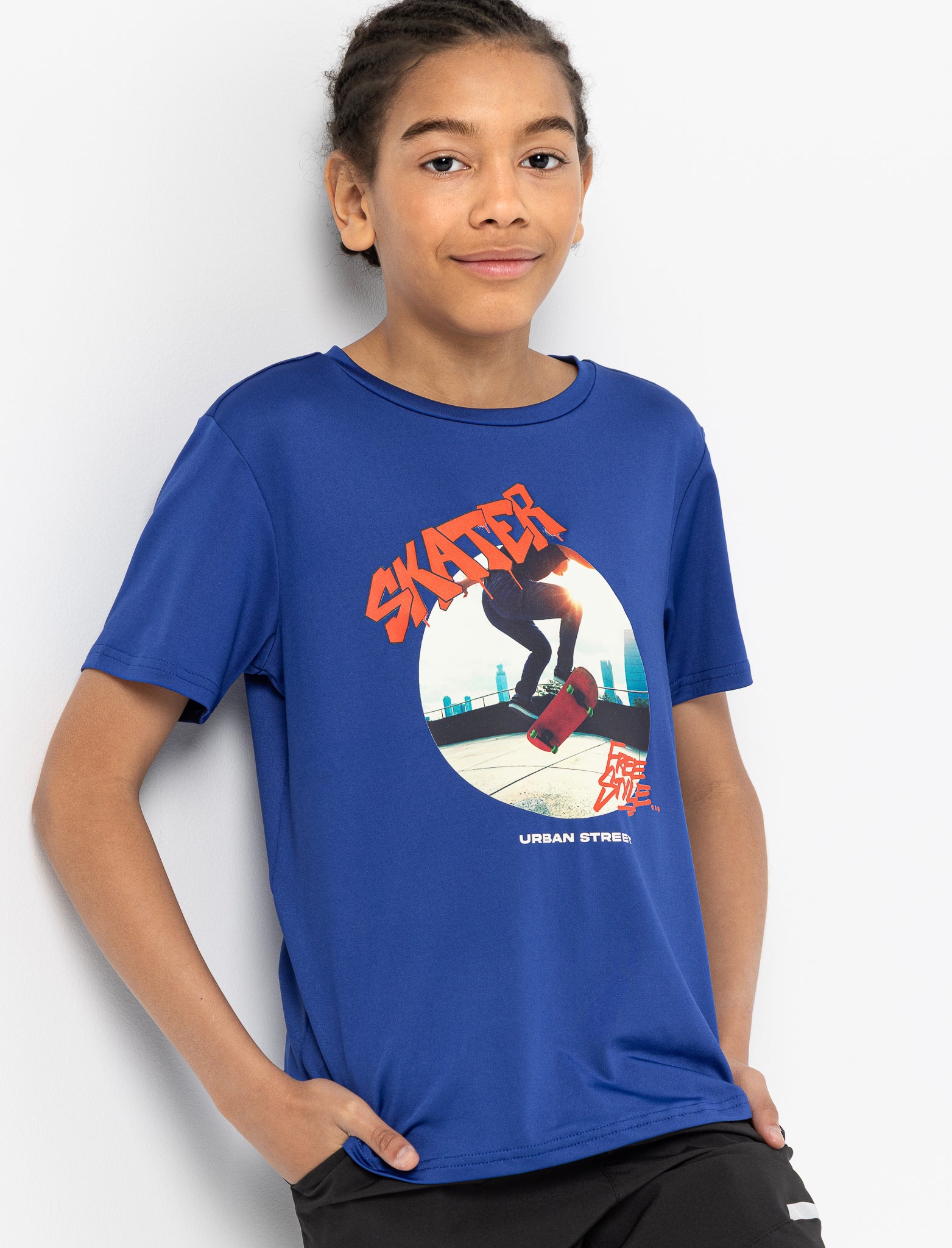 T-shirt de sport à manches courtes et col rond. Imprimé à l’avant. Tissu à séchage rapide pour un confort optimal.