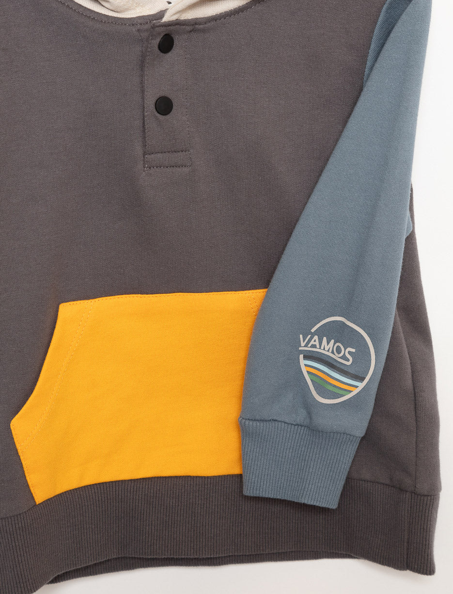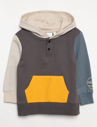 Ce chandail à capuchon joue avec les contrastes pour créer un style à la fois doux et dynamique. Parfait pour donner à votre mini une touche de style sans effort.