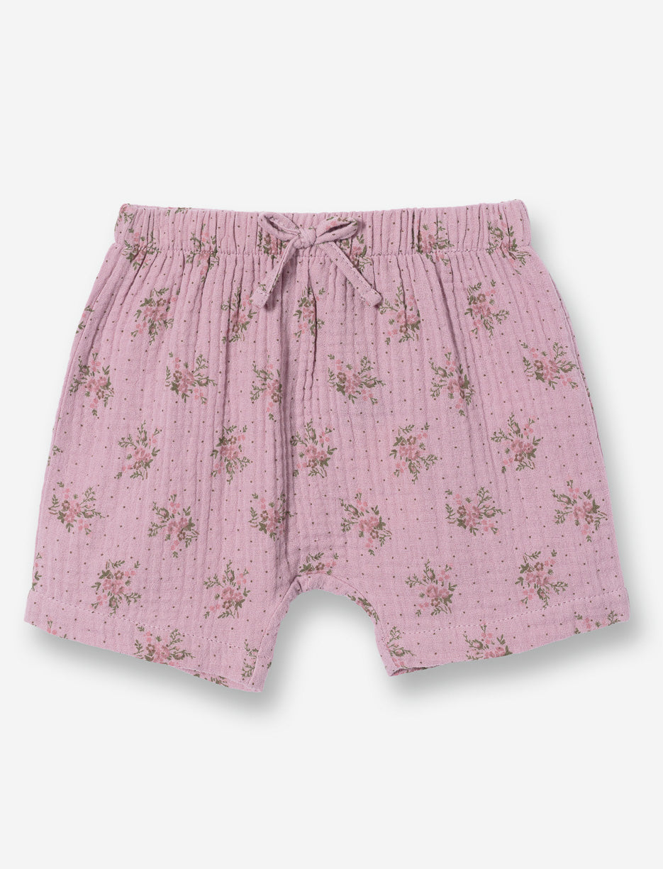 Short confortable avec taille élastique et boucle devant pour bébé fille. Motif adorable sur l'ensemble du vêtement. Parfait pour les journées de jeu et de détente.