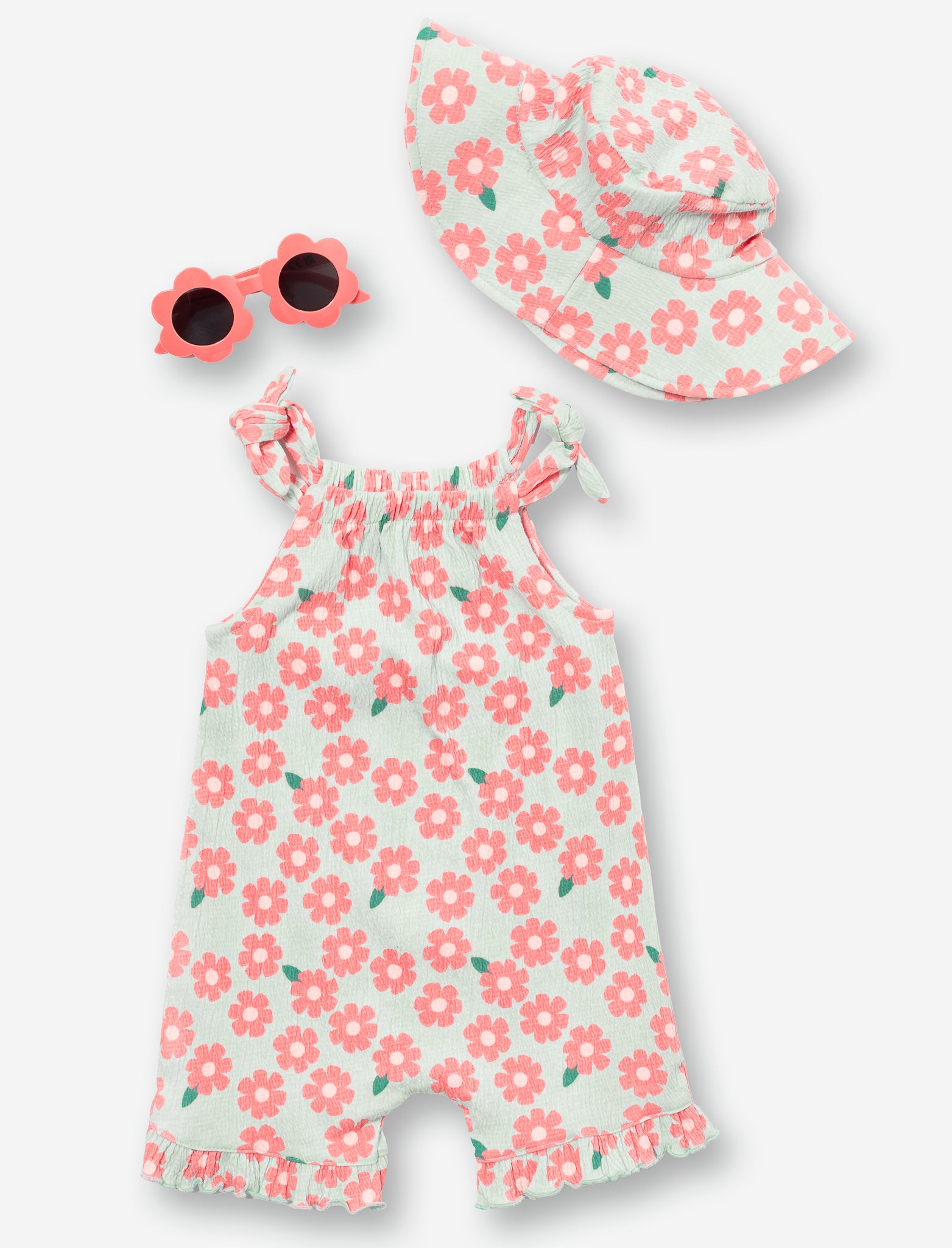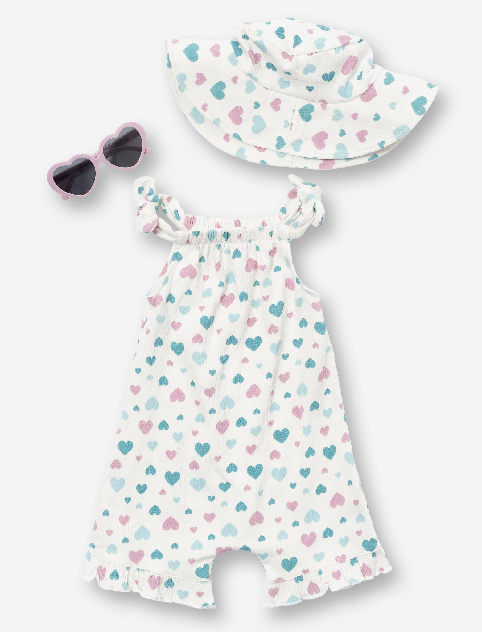 Ensemble complet pour bébé comprenant une barboteuse confortable, des lunettes de soleil protectrices et un chapeau assorti. Parfait pour les sorties estivales en famille, cet ensemble offre style et protection contre les rayons UV.