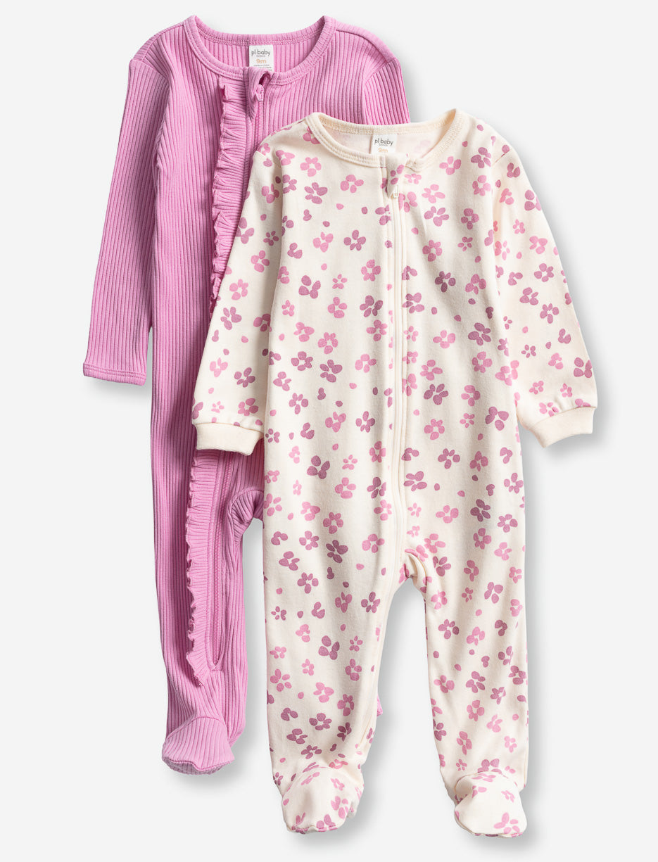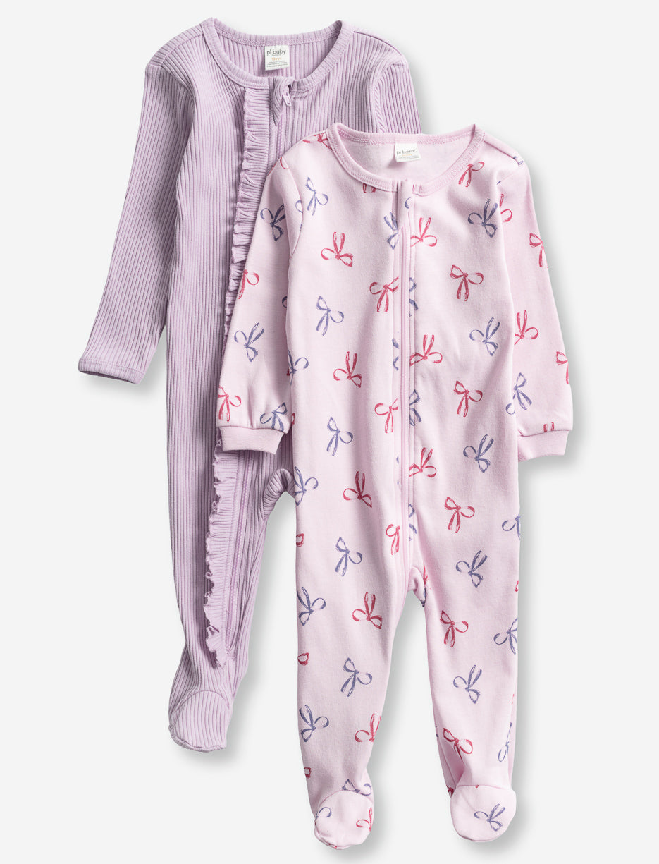 Ensemble de 2 pyjamas une pièce à pattes pour bébé fille, aux couleurs et motifs assortis. Confortables et douillets, ils sont parfaits pour des nuits paisibles tout en gardant un look coordonné adorable.
