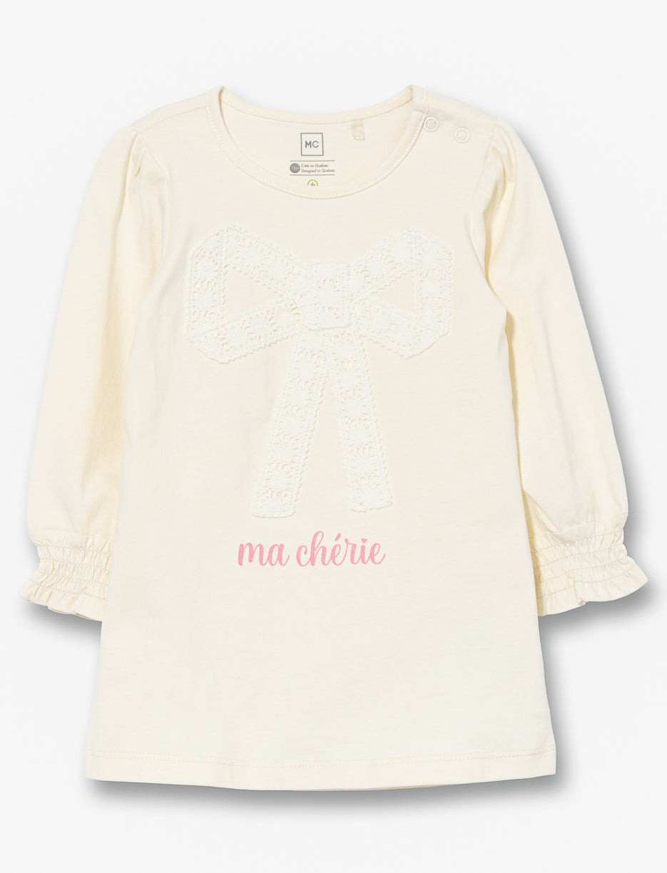 Découvrez cette adorable tunique pour bébé fille, parfaite pour les petites fashionistas en herbe! Dotée d'un col rond classique et de manches longues confortables, elle offre une couverture douce et pratique. Les poignets en nid d'abeille assurent un ajustement parfait aux poignets, tandis que la boucle en dentelle sur le devant ajoute une touche de charme et d'élégance. Idéale pour les sorties ou les jours de détente, cette tunique combine style et confort pour votre petite princesse.