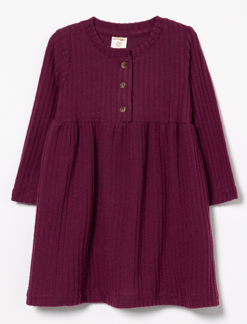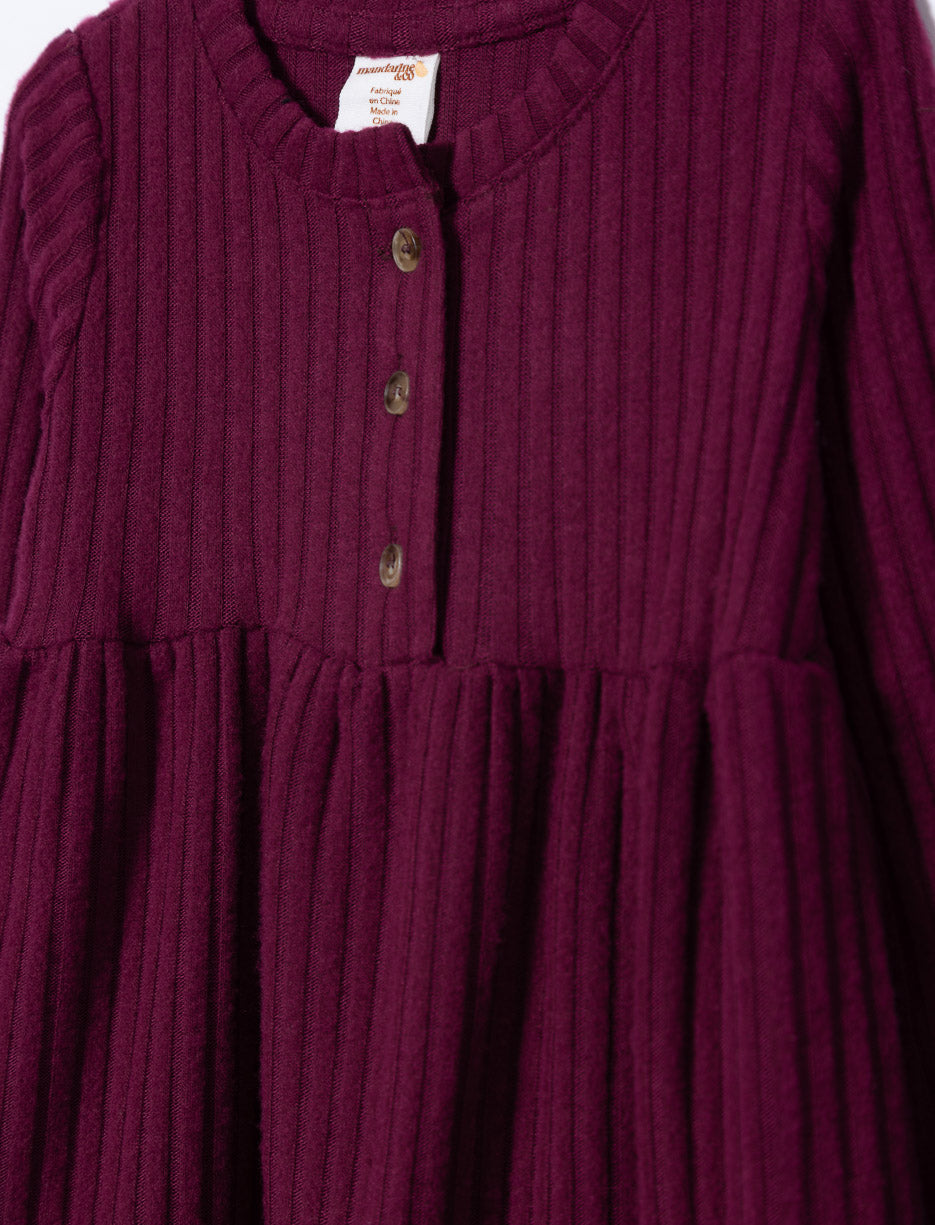 Douce et plein de charme, cette robe de couleur unie à col rond et sa finition côtelée sur l'ensemble, est un essentiel confortable pour toutes occasions.
