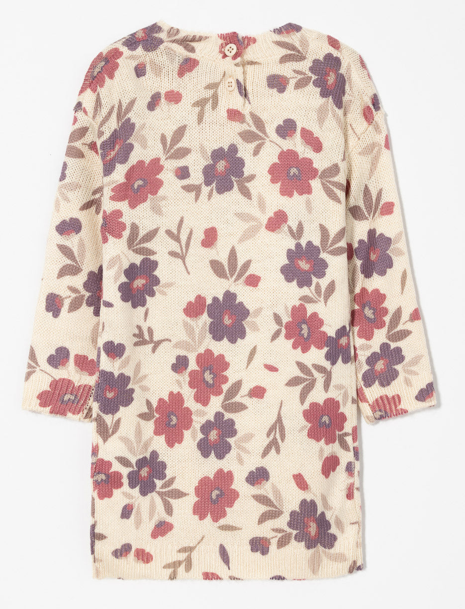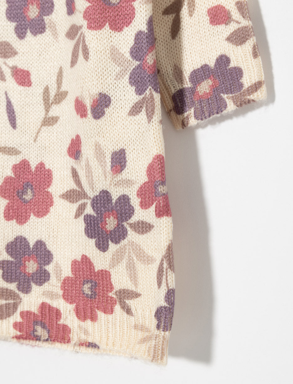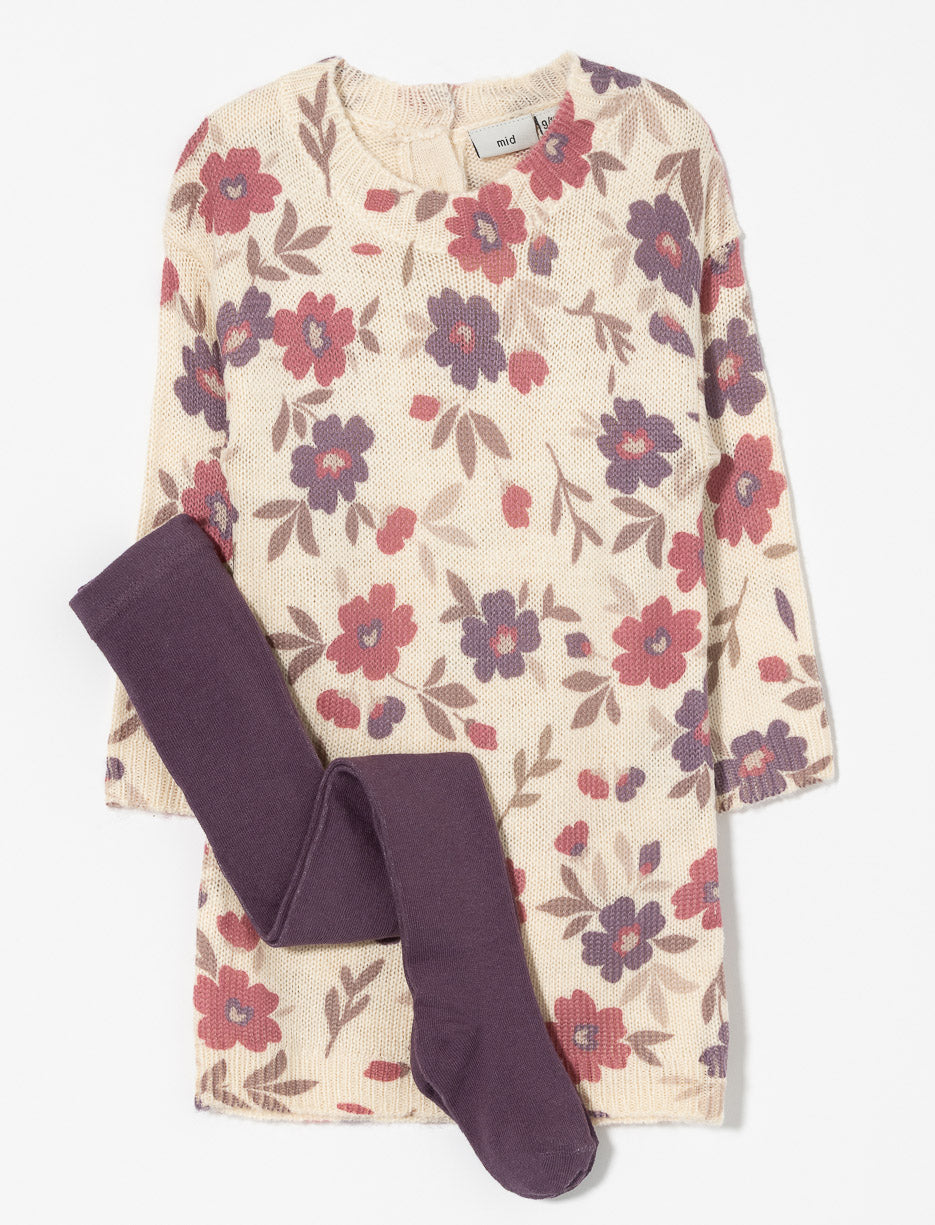 Un ensemble adorable qui allie confort et fantaisie : une robe fleurie en tricot et ses collants assortis pour habiller bébé fille avec style et douceur.