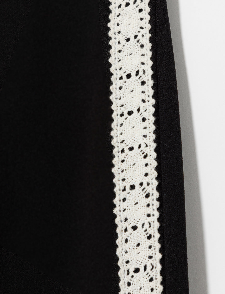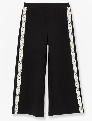 Pantalon confortable pour petite fille avec taille élastique facile à enfiler. Coupe ample aux jambes et détails en dentelle contrastante sur les côtés pour un style chic et décontracté.