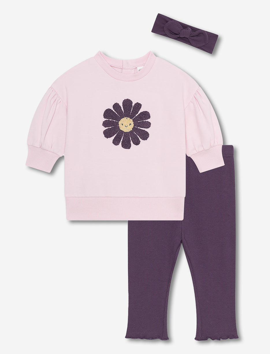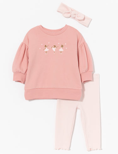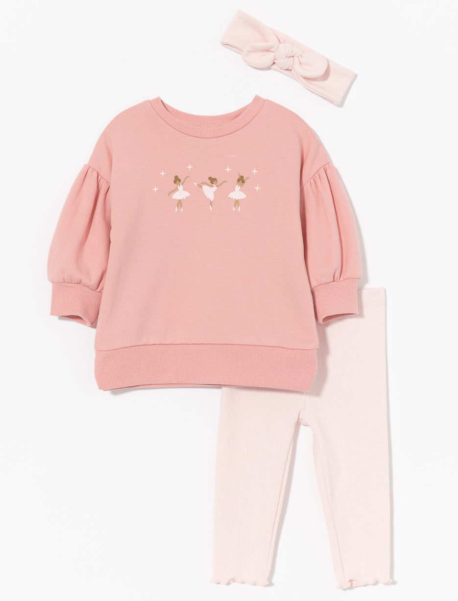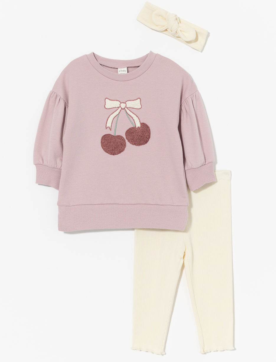 Un ensemble pensé pour le confort et le style : tunique douce à manches ballon, legging côtelé extensible et son petit bandeau assorti qui ajoute une touche craquante. Idéal pour bouger librement tout en restant adorable.