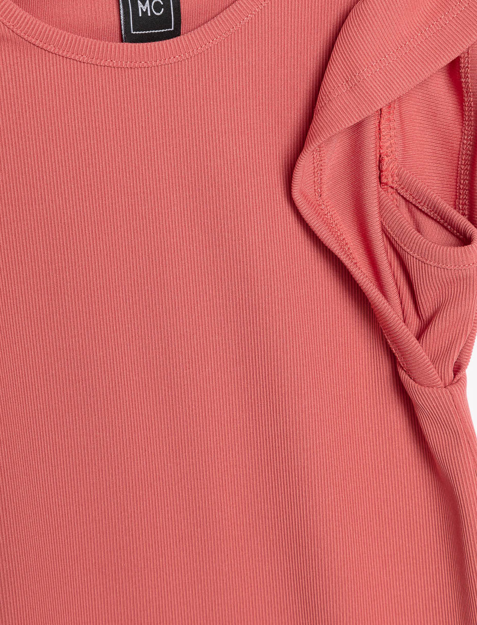 Un essentiel du quotidien, à la fois doux et charmant! Ce t-shirt côtelé ajoute une jolie touche à n’importe quelle tenue. Confortable et extensible, il se marie parfaitement avec un short, un jean ou une jupe.