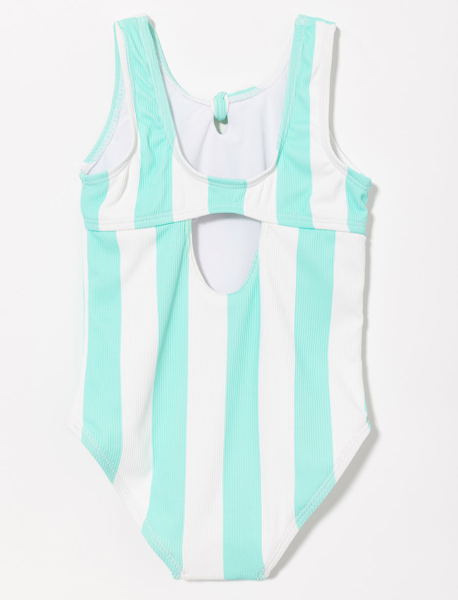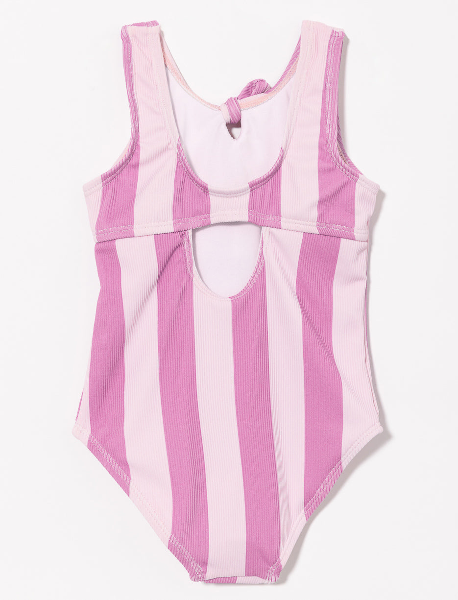 Maillot de bain 1 pièce à larges bretelles avec nœud à l’avant et dos ouvert. Son imprimé ludique et sa protection UV50 en font le choix parfait pour s’amuser au soleil avec style et confort.