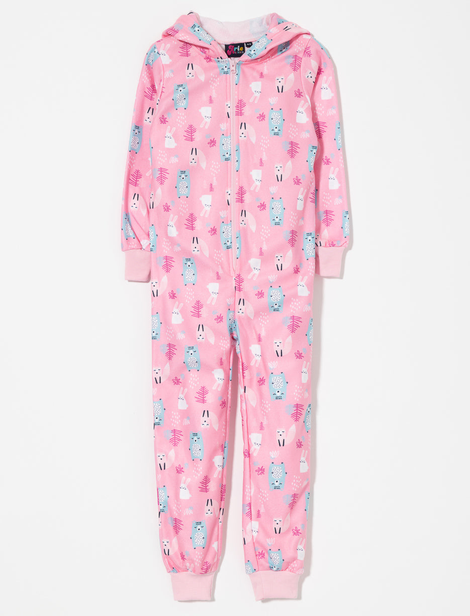 Pyjama 1 pièce imprimé à capuchon - petite fille