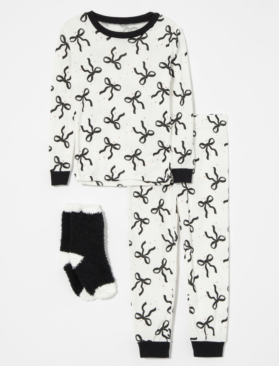Conçu pour le confort des petites filles, ce pyjama 2 pièces mise sur un imprimé de nœuds qui apporte une touche tendance et originale. Les petits bas noirs doux ajoutent encore plus de confort à ses soirées détente.