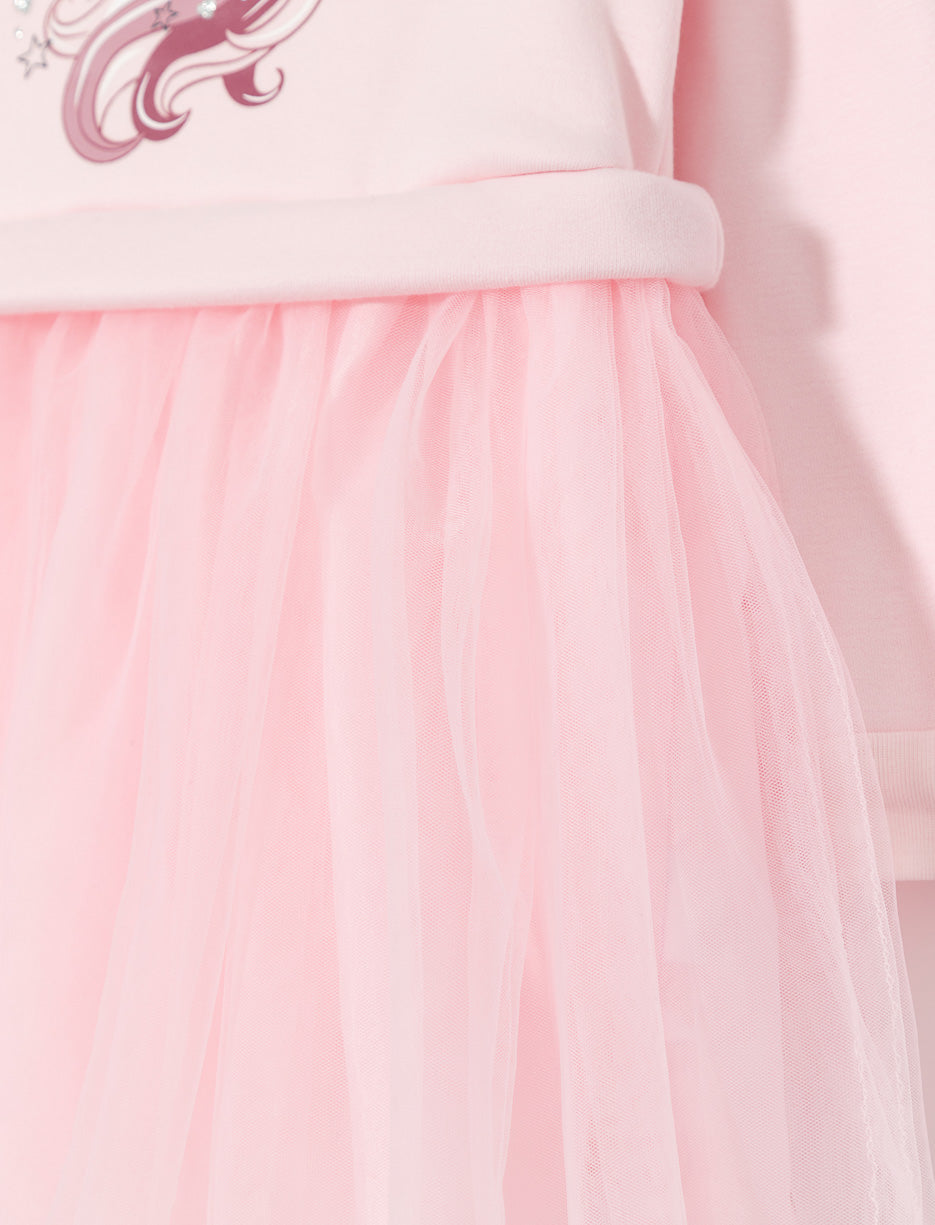 Robe imprimée avec jupe en tulle - petite fille