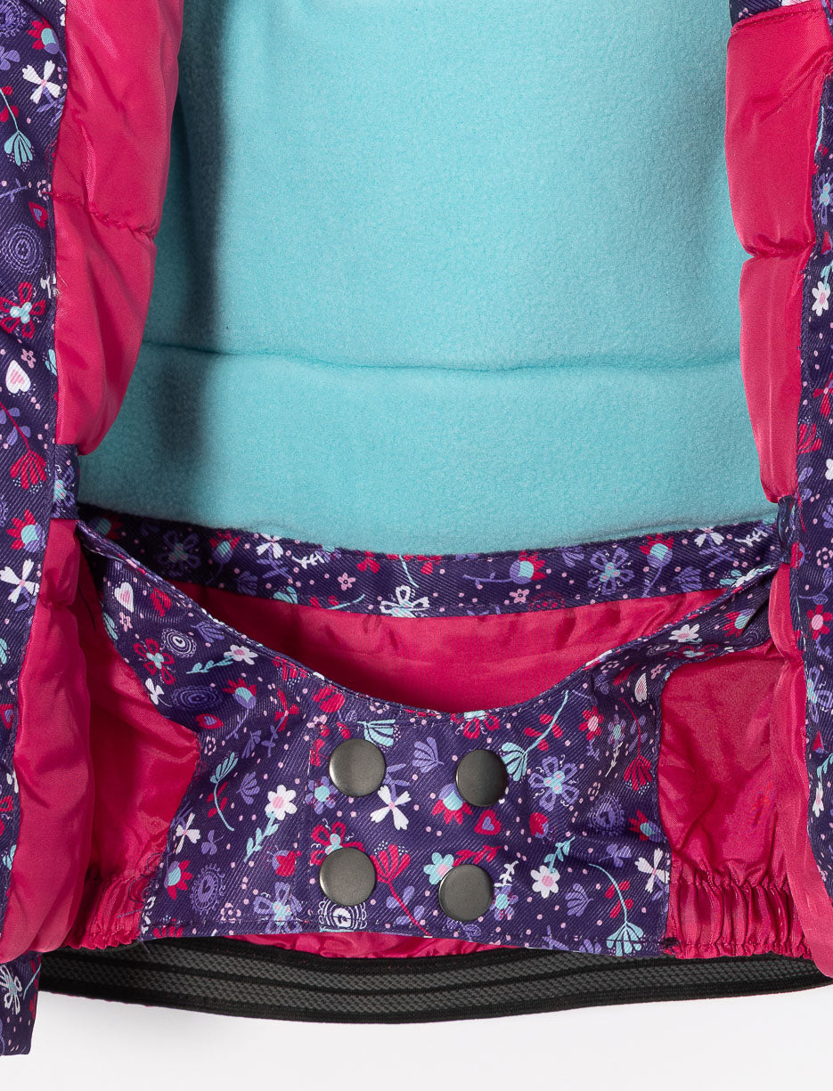 Confort et chaleur assurés avec cet habit de neige 2 pièces ! Manteau à capuchon zippé et imprimé floral, pantalon à bretelles avec genoux renforcés et bas élastiques. Tissu Oxford résistant doublé en micro polar pour un hiver au sec.