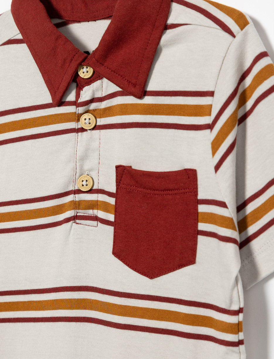 Avec ses rayures stylées et sa poche contrastante, ce polo apporte une touche cool et confortable à la tenue de votre garçon.