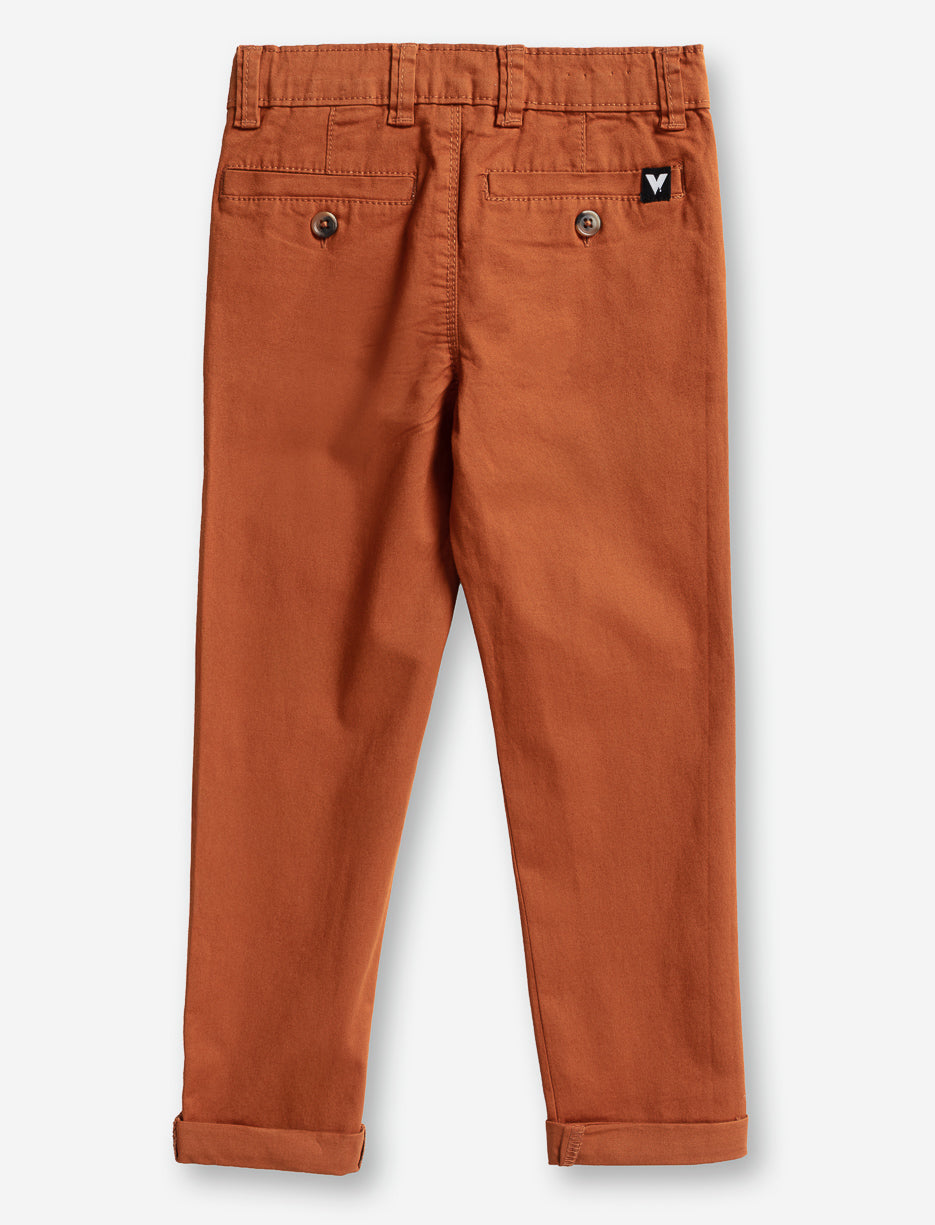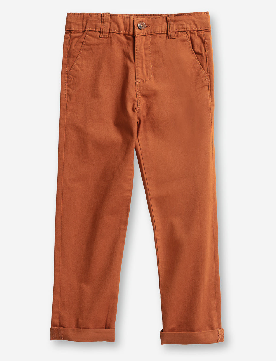 Pantalon chino pour petit garçon, confectionné en twill léger et confortable. Taille structurée, doté de 5 poches pratiques et de jambes ajustées avec revers roulottés pour un style soigné et moderne.