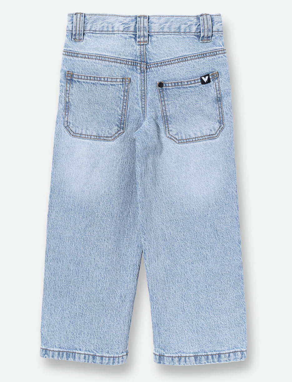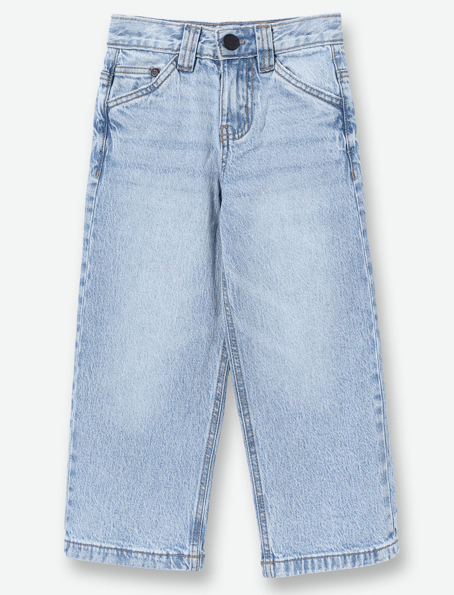 Jean à jambe large et taille construite pour petit garçon. Doté de poches à l’avant et à l’arrière, il offre confort et liberté de mouvement.