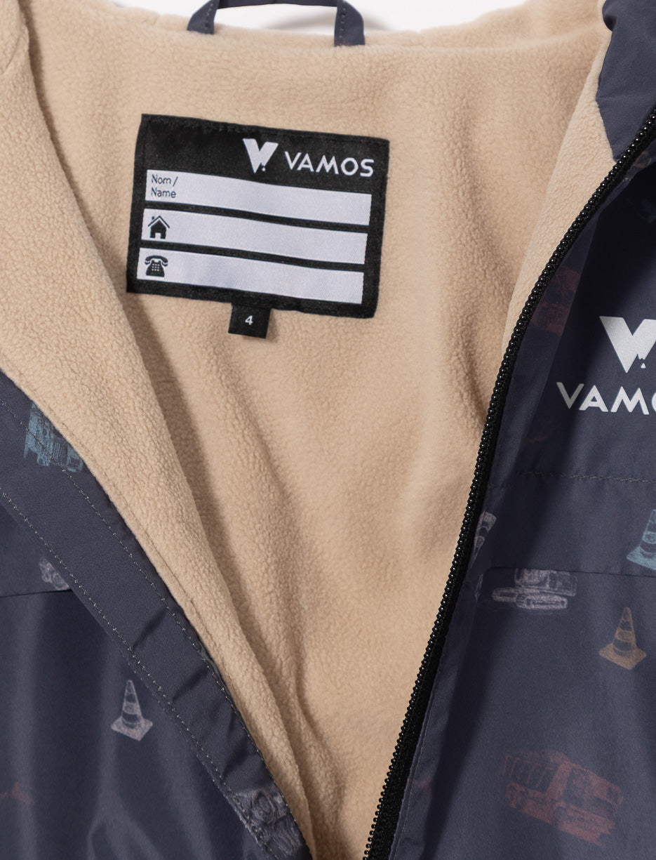Prêt pour l'aventure, peu importe la météo! Cet habit de pluie deux pièces gardera votre petit explorateur au sec et confortable. La veste dotée d'un capuchon protecteur offre une couverture complète, tandis que les deux poches zippées avant gardent les petits trésors en sécurité. Les poignets élastiques empêchent l'eau de s'infiltrer. Le pantalon assorti, de couleur unie et à taille élastique, s'enfile facilement. La doublure en polar ajoute une chaleur douillette. Parfait pour les jours de pluie, les flaques d'eau et les grands jeux à l'extérieur!