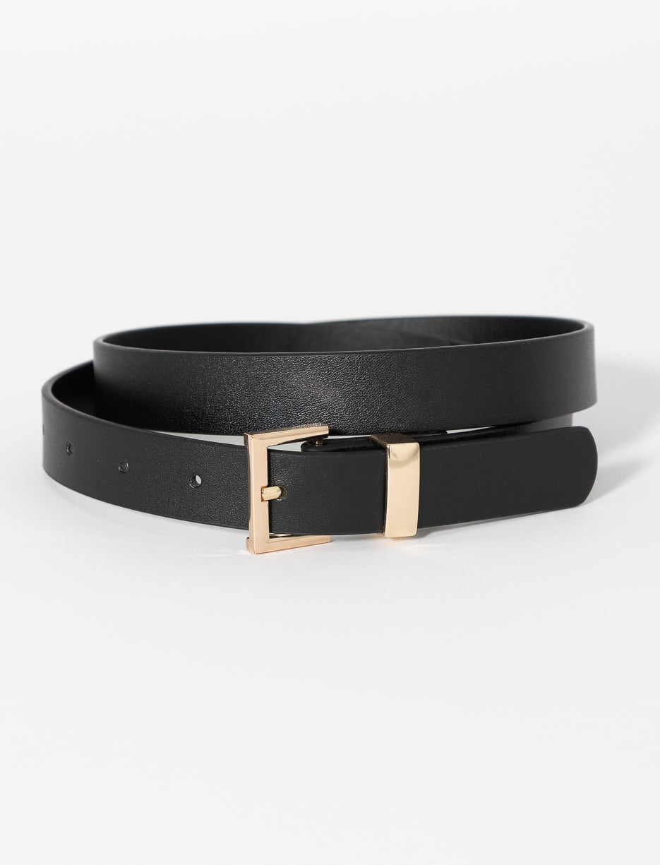 Une ceinture en faux cuir qui se marie facilement à tout look. Sa boucle carrée dorée ajoute une touche élégante et discrète, parfaite pour ajuster un pantalon ou souligner la taille avec simplicité.