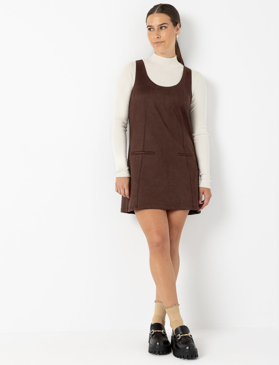 Apportez une touche rétro à votre style avec cette robe jumper en suede, parfaite pour jouer avec les superpositions.