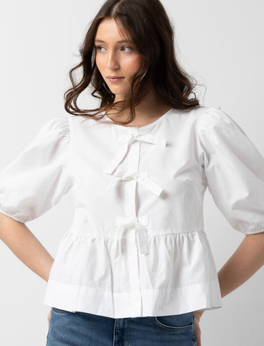 Des détails soignés et des nœuds pleins de délicatesse. Cette blouse en popelin apporte une touche raffinée à votre quotidien.
