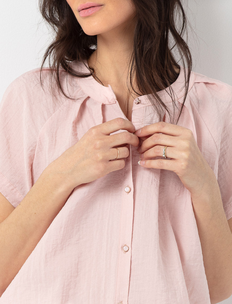 Douceur et légèreté s’unissent dans cette chemise fluide à manches courtes. Sa coupe décontractée promet une allure naturelle et sans effort.