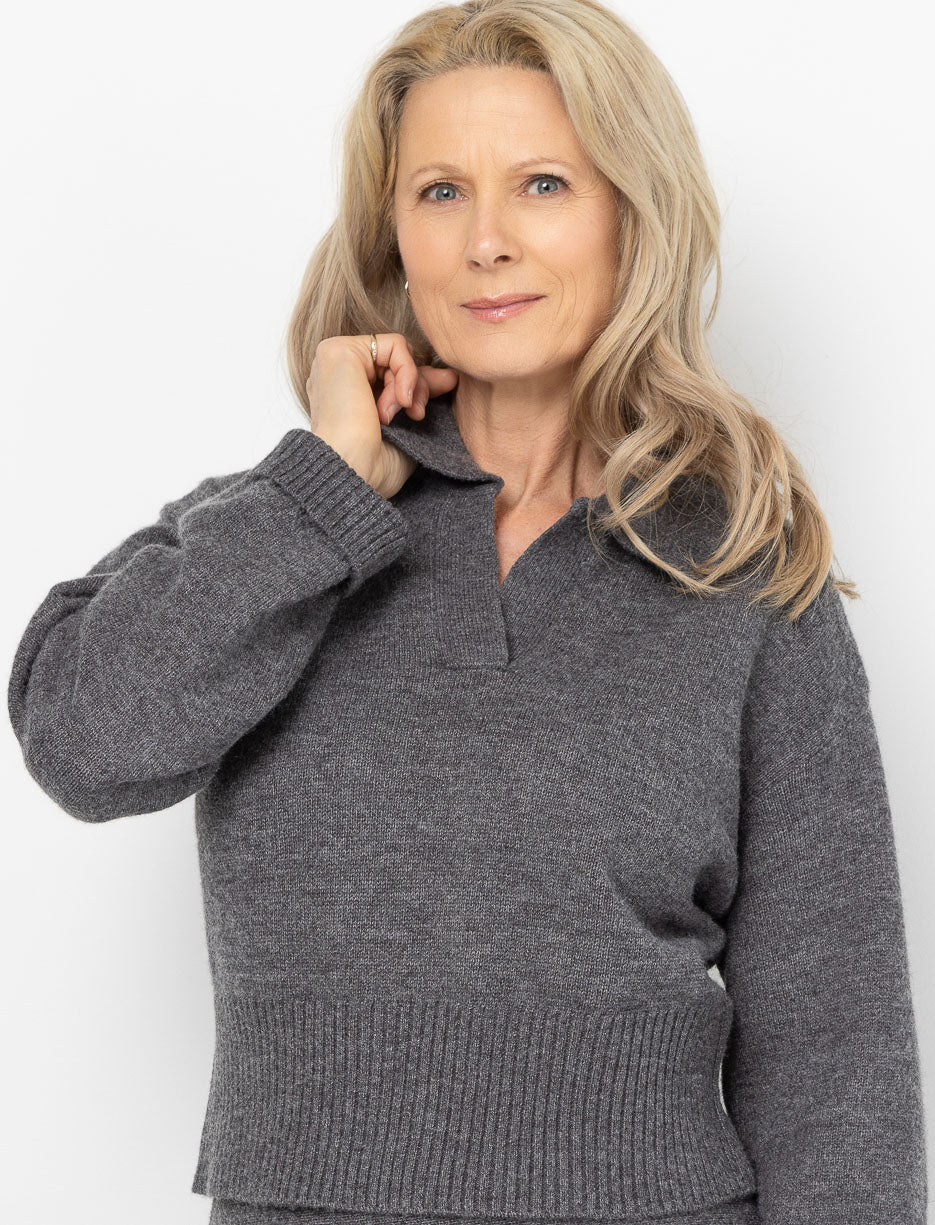 Chic et confortable, ce chandail en tricot à col ouvert offre une allure moderne parfaite pour compléter vos tenues du quotidien.