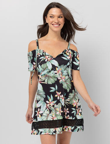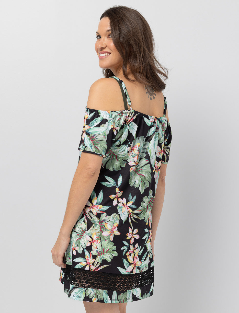 Cette tunique imprimée dégage un charme estival avec ses bretelles fines et ses manches posées sur les épaules. Son bas orné d’un délicat détail crochet apporte une finition raffinée qui rehausse aussitôt votre look au bord de l’eau.