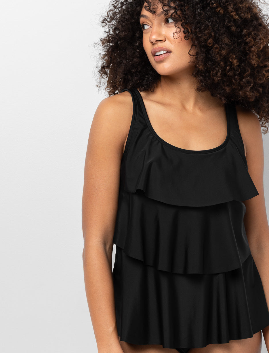 Avec ses volants étagés qui bougent à chaque pas, ce tankini ajoute une touche de légèreté irrésistible. Les larges bretelles assurent un soutien confortable, pour vous accompagner avec confiance du bord de l’eau à vos moments préférés au soleil.