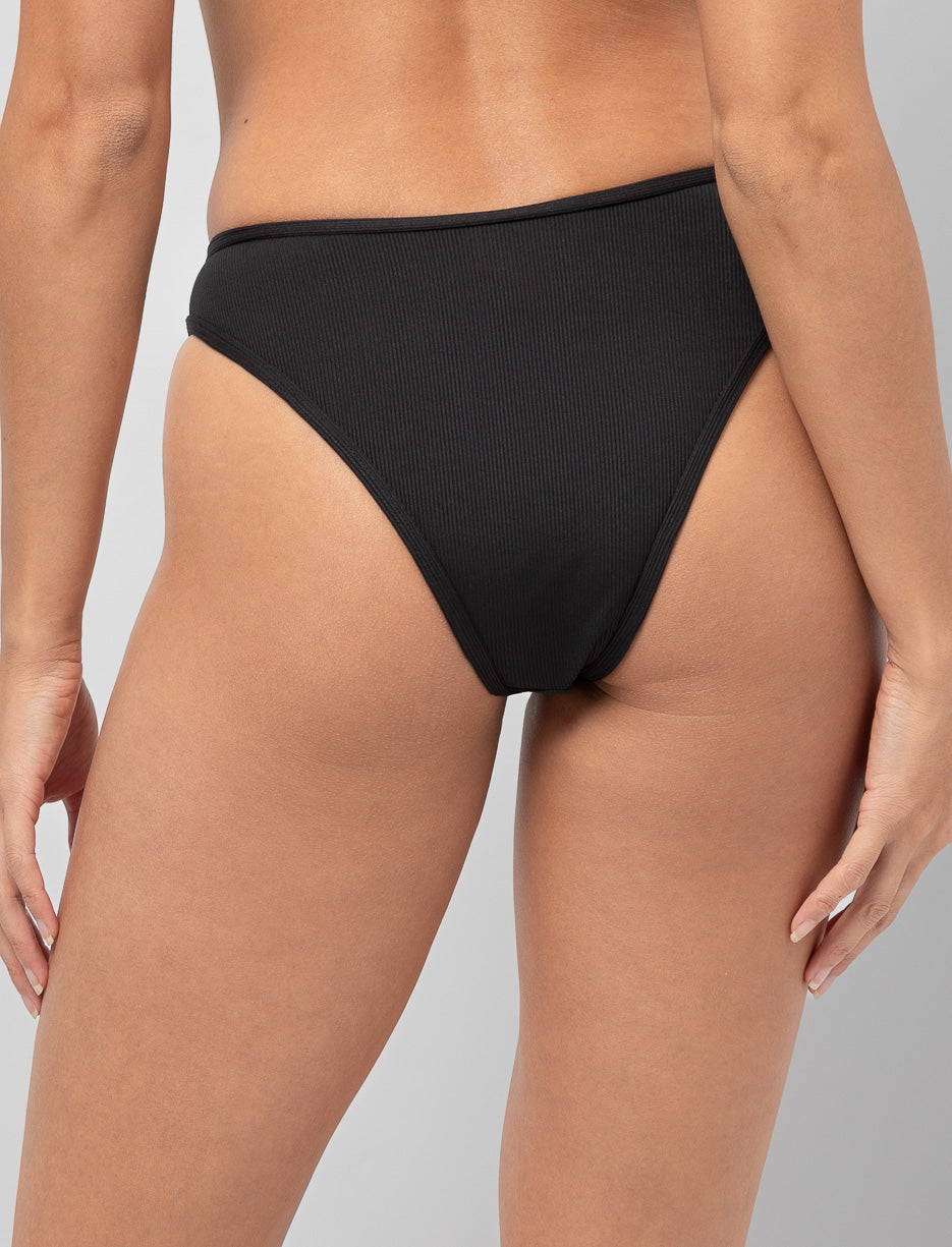 Optez pour une allure moderne avec ce bas de bikini côtelé à coupe échancrée. Sa ligne haute allonge subtilement la jambe tout en offrant un confort doux et extensible, parfait pour profiter du soleil avec aisance.