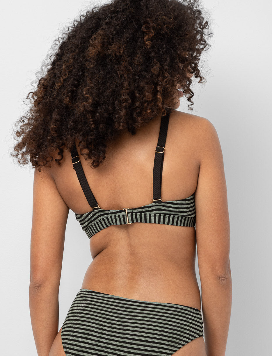 Avec ses larges bretelles ajustables et sa coupe confortable, ce haut de bikini à rayures vous accompagne avec assurance. Une pièce qui apporte naturellement une allure ensoleillée, parfaite pour savourer chaque moment près de l’eau.