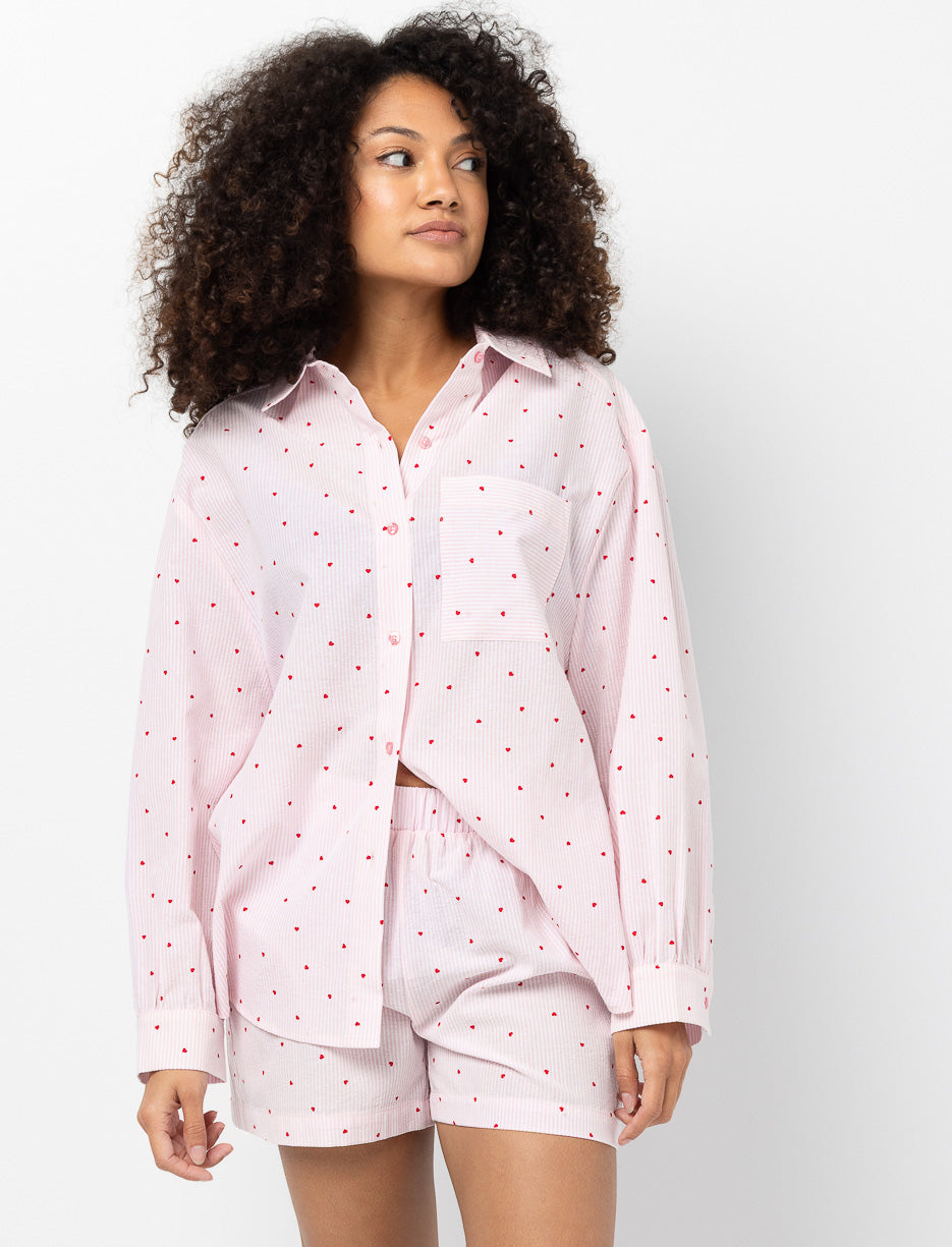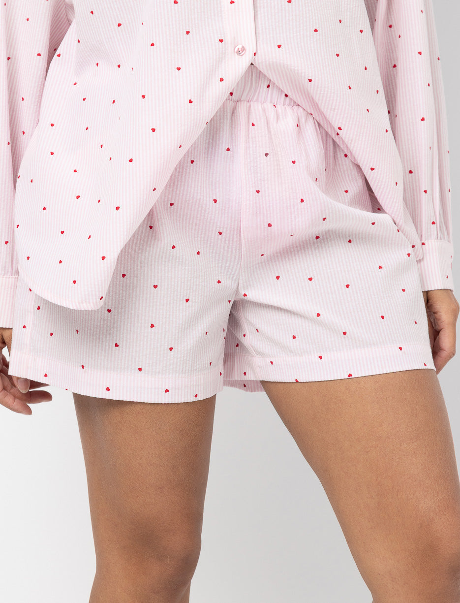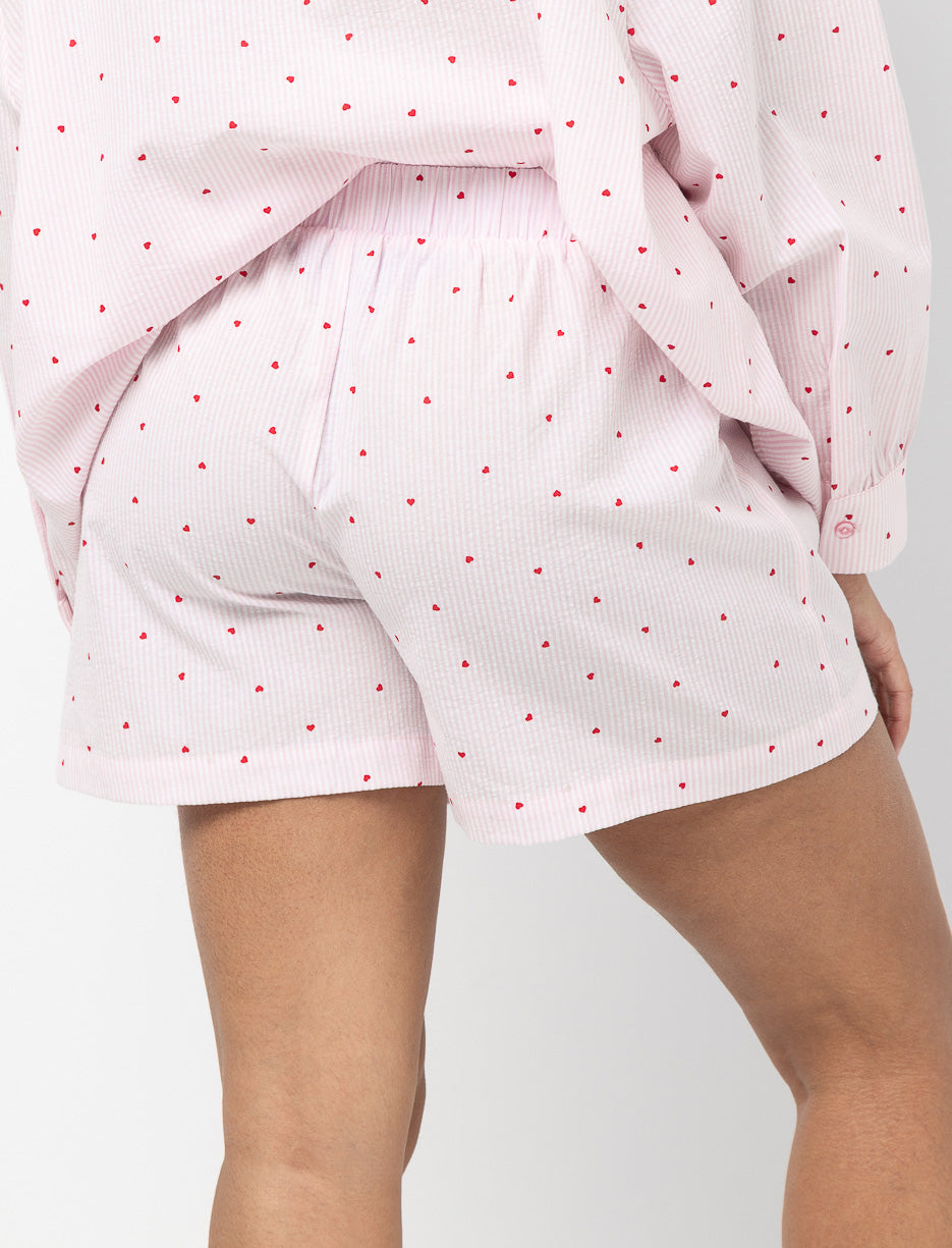 Un short de pyjama pensé pour le confort. La taille élastique assure un porté facile, tandis que les petits cœurs ajoutent une touche délicate pour accompagner vos moments de détente.