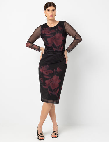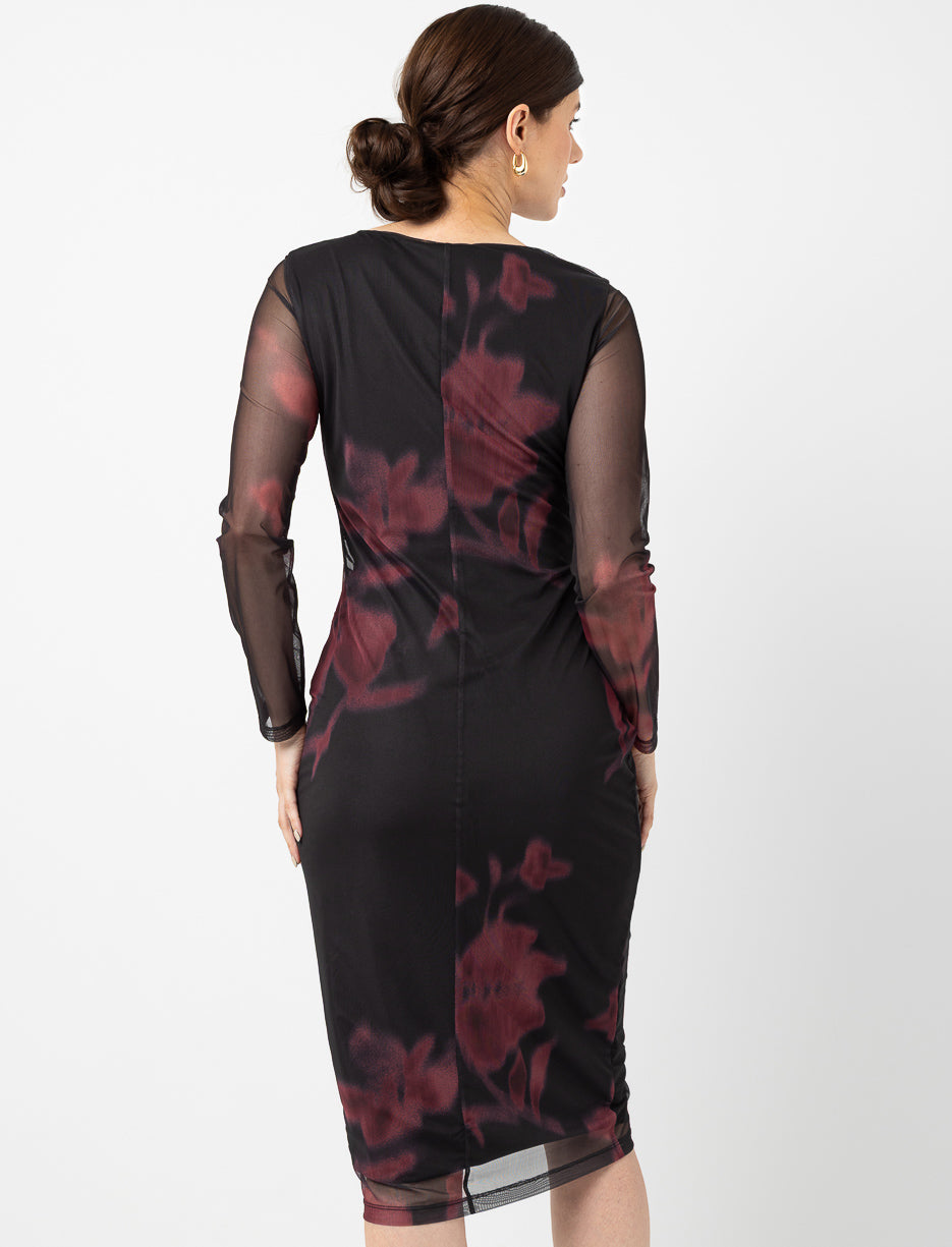 Sublimez vos occasions avec cette robe midi ajustée. Ses manches longues en tulle transparent et son imprimé floral raffiné apportent une allure moderne et féminine.