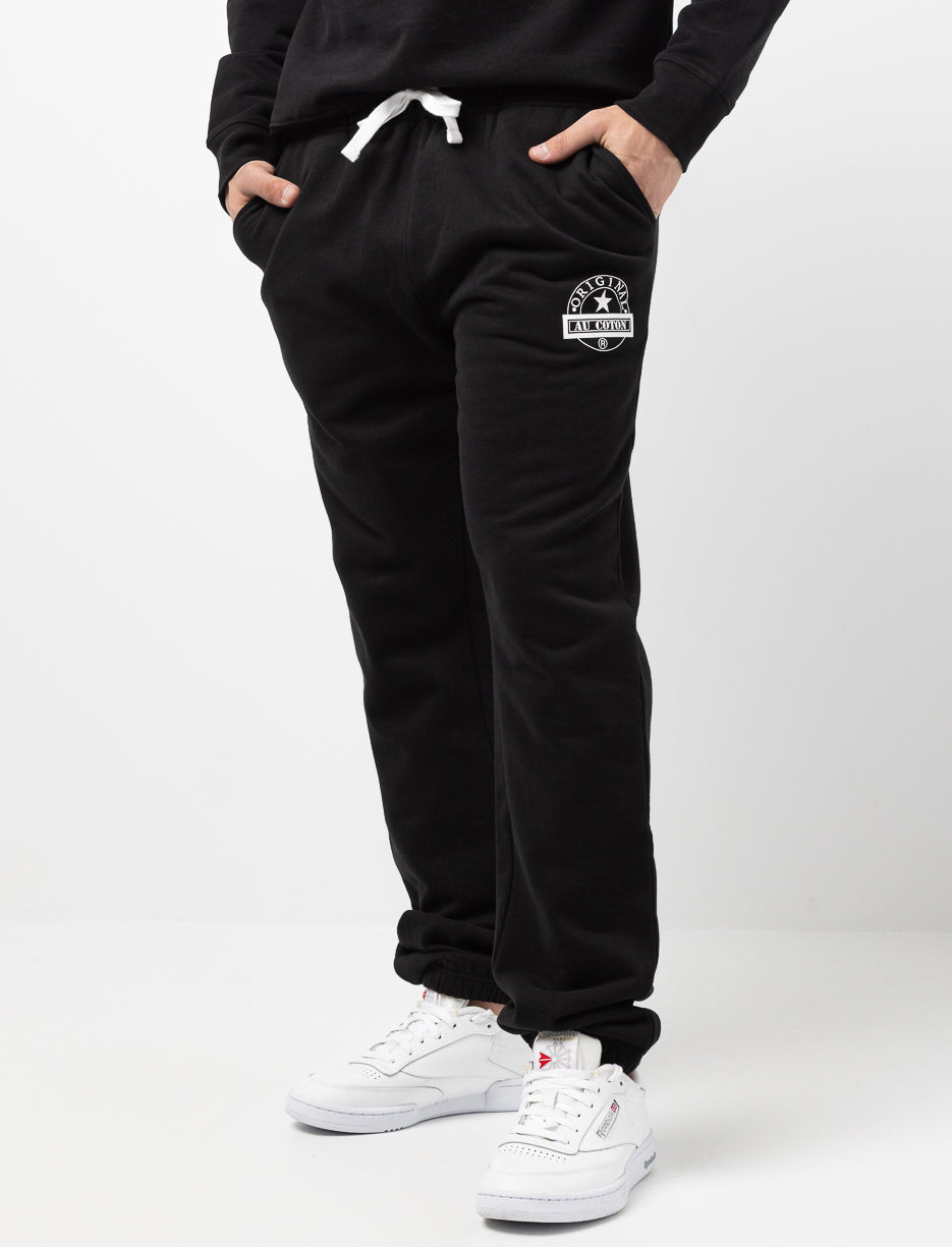 Cet item peut rétrécir au lavage. Nous recommandons de choisir 1 à 2 tailles plus grandes. Pantalon noir Original Au Coton à coupe décontractée et taille élastique avec cordon. Logo emblématique et confort rétro pour un essentiel intemporel.