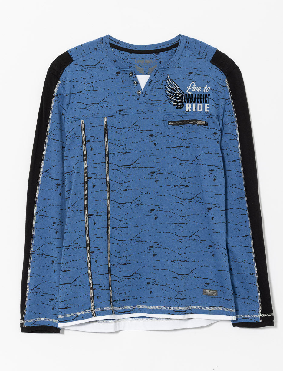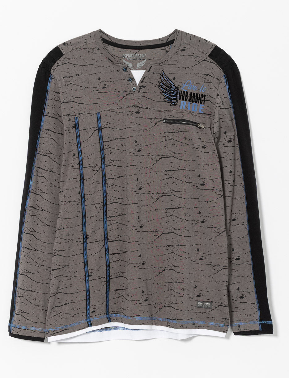 Un t-shirt en jersey texturé à col en V boutonné et bandes contrastantes. Un style moderne et confortable pour toutes les occasions décontractées.