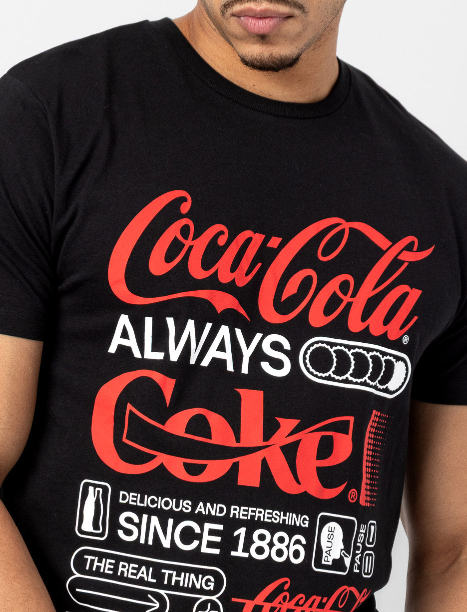 T-shirt à manches courtes avec col rond et imprimé Coca-Cola emblématique. Coupe classique et confortable pour un style intemporel. Parfait pour les amateurs de la marque iconique.