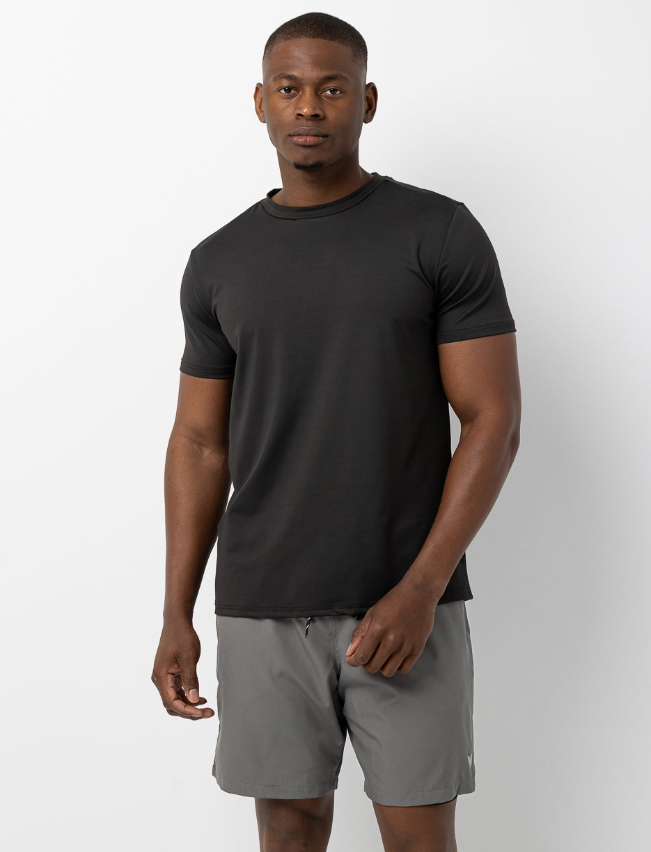 Ce t-shirt de sport uni à col rond pour homme est léger et respirant, parfait pour rester à l’aise et actif toute la journée.