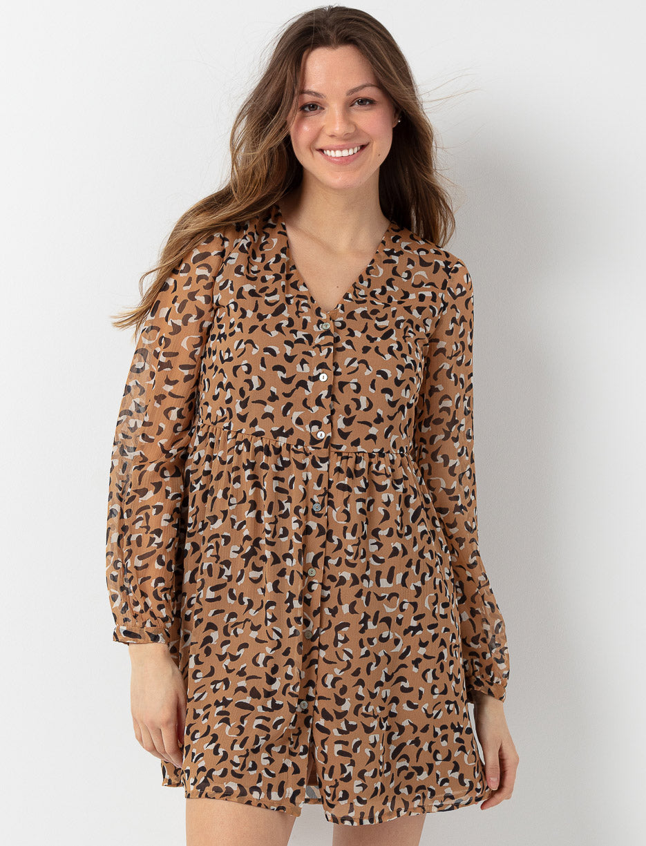 Craquez pour cette robe courte à manches longues et encolure en V, parfaite pour donner une touche chic et décontractée à vos journées.