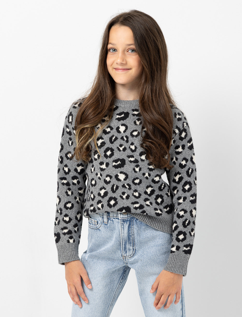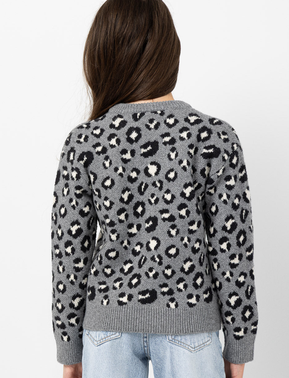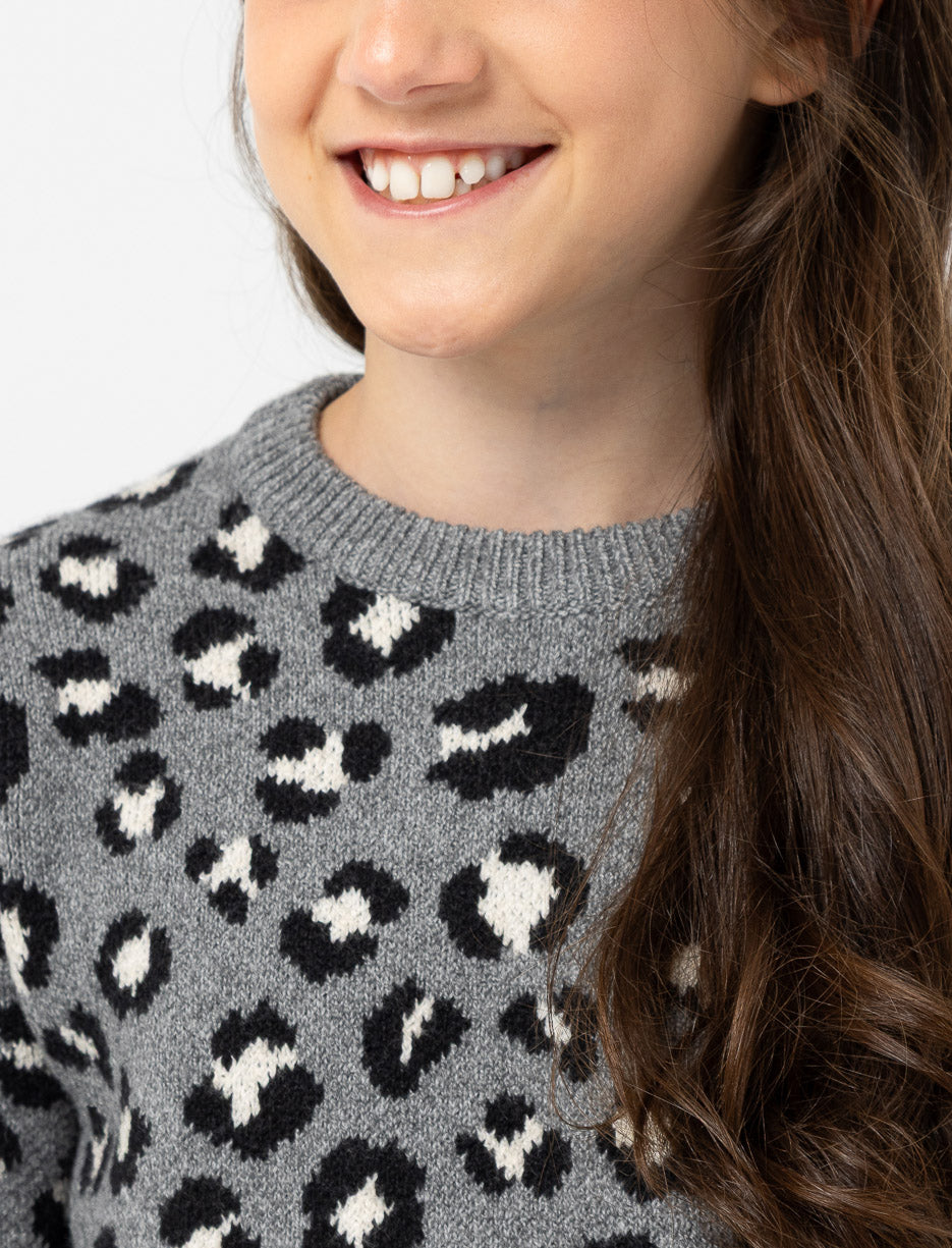Ce chandail en tricot à imprimé léopard attire le regard tout en offrant chaleur et douceur. Son col rond classique et ses poignets côtelés en font une pièce pratique, parfaite pour les journées fraîches comme pour les moments détente à la maison.