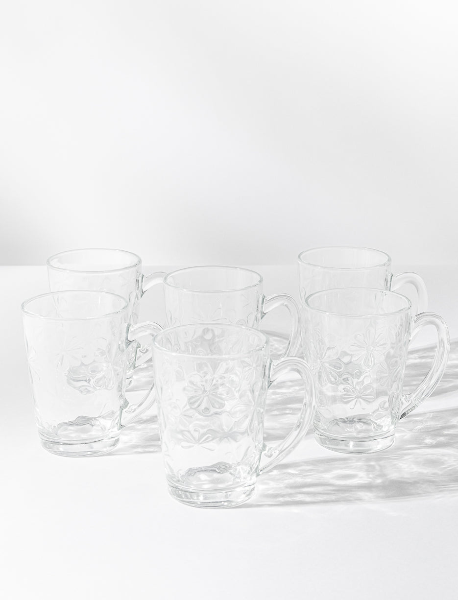 Tasses en verre à motif fleurs - ensemble de 6