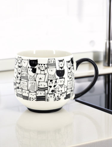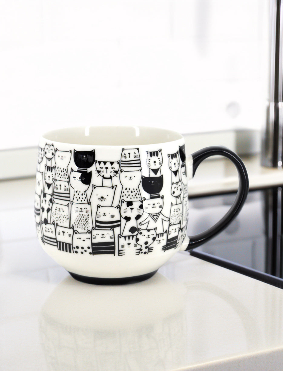 Apportez une touche ludique à vos pauses café ou thé avec cette tasse en porcelaine fine ornée d’un motif de chats noir et blanc. Parfaite pour les amoureux des félins. Capacité : 500 mL (17 oz).
