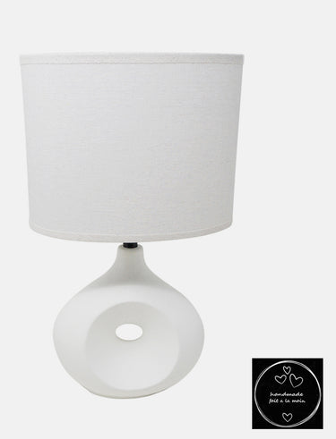 Une lampe de table unique avec base en céramique faite à la main, parfaite pour créer une ambiance douce et raffinée dans votre espace. Dimensions : hauteur 41 cm et diamètre 16 cm.