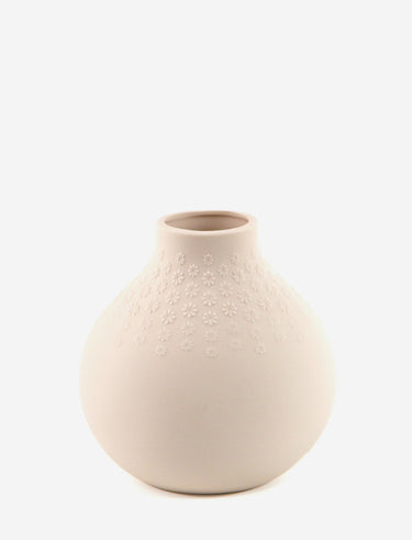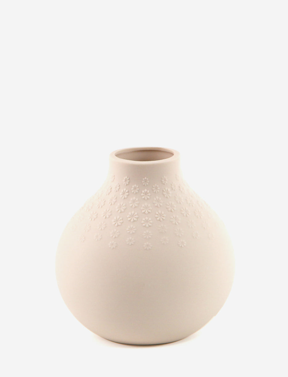 Vase rond en porcelaine au fini mat, doté d’une texture délicate en relief inspirée des pétales. Idéal pour fleurs fraîches ou séchées et pour ajouter une touche naturelle et douce à votre décor. Hauteur : 11 cm.