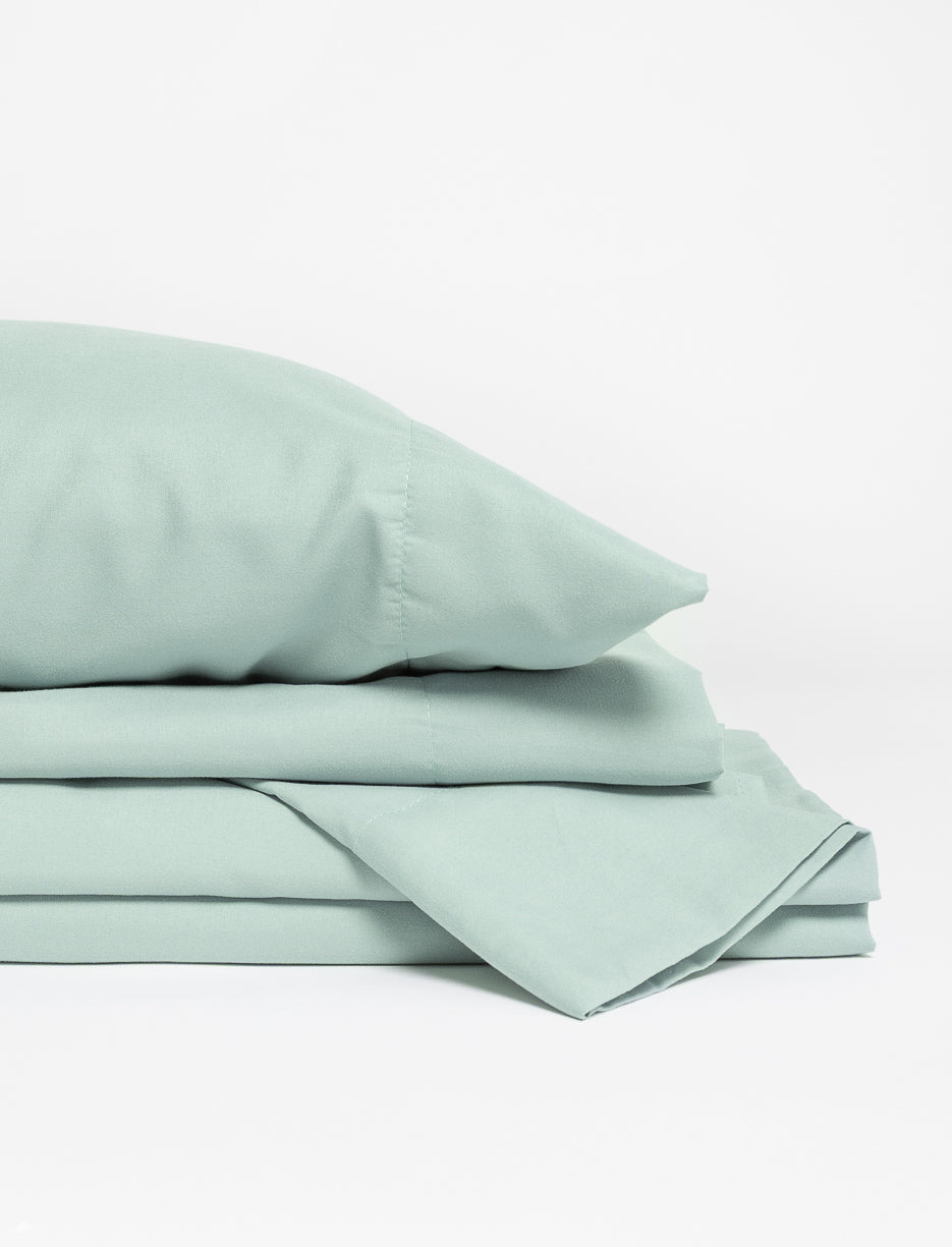 Ensemble double comprenant un drap plat, un drap contour ajusté et deux taies d’oreiller assorties, pensé pour des nuits simples et confortables.