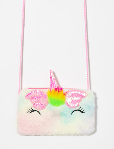 Petit sac à bandoulière tout doux en forme de licorne multicolore, avec corne scintillante et oreilles brillantes. Parfait pour ajouter une touche magique à chaque sortie ! Dimensions : 12,5 x 20,5 cm (4.9 x 8 po)