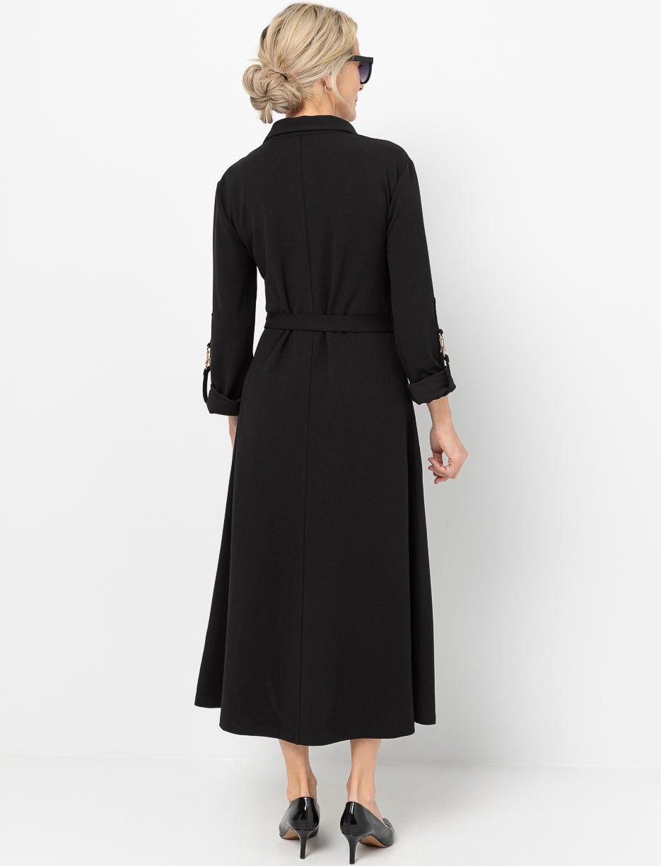 Cette robe midi à boutons combine allure et confort grâce à son col chemisier, sa ceinture nouée et ses détails soignés. Une pièce polyvalente qui vous offre une silhouette élégante sans effort, du matin au soir.