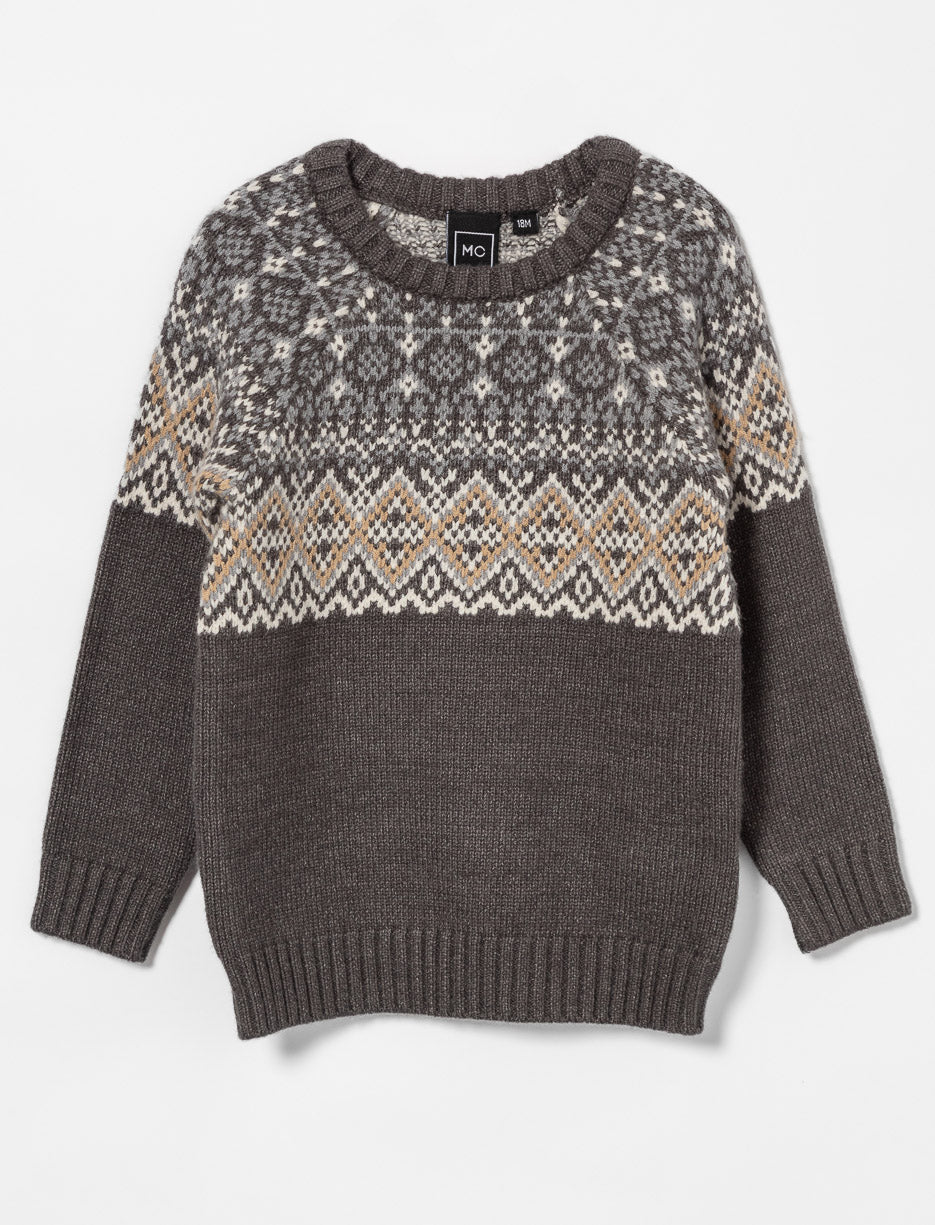 Conçu pour le confort des tout-petits, ce chandail en tricot jacquard accompagne bébé dans ses premières découvertes. Doux et pratique, il est parfait pour les journées fraîches comme pour les moments câlins à la maison.