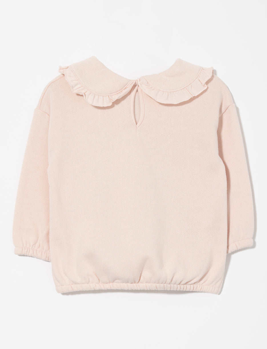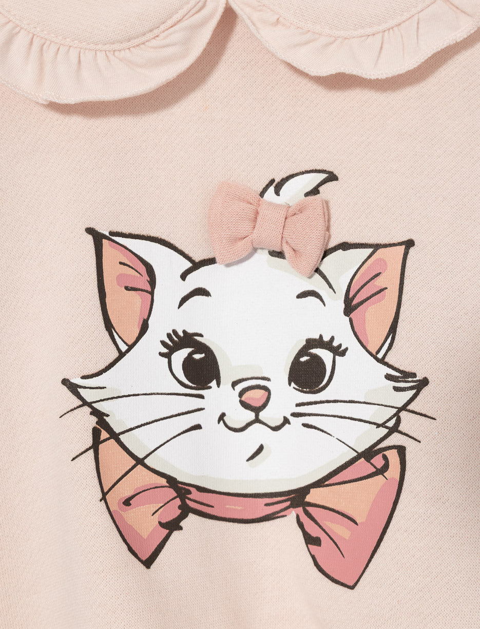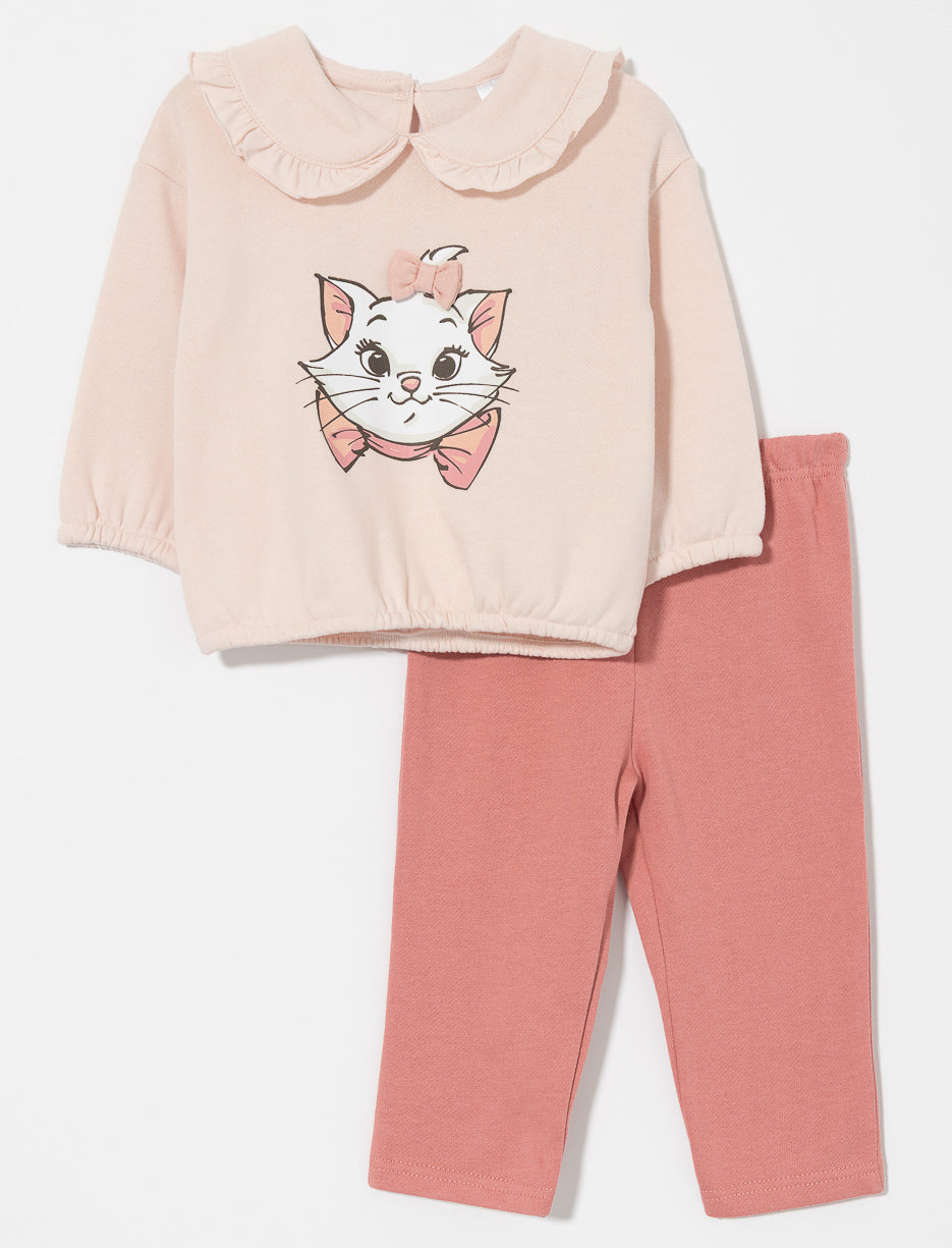 Discover this 2-piece set featuring a pink sweatshirt with frilled collar and Marie print, paired with matching pants. A soft and practical outfit that combines comfort and adorable style.